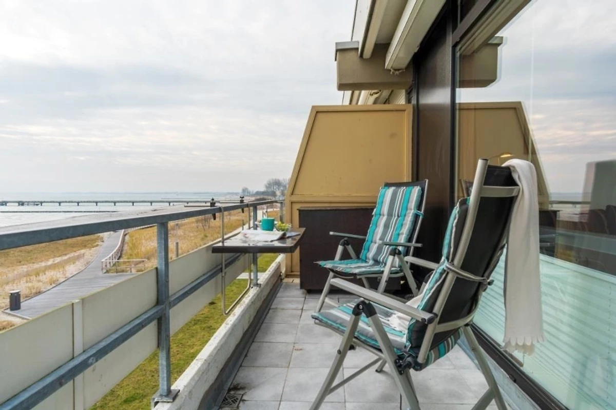 Vom Wohnzimmer aus gelangen Sie auf den Südbalkon - ebenfalls mit tollem Meerblick!
