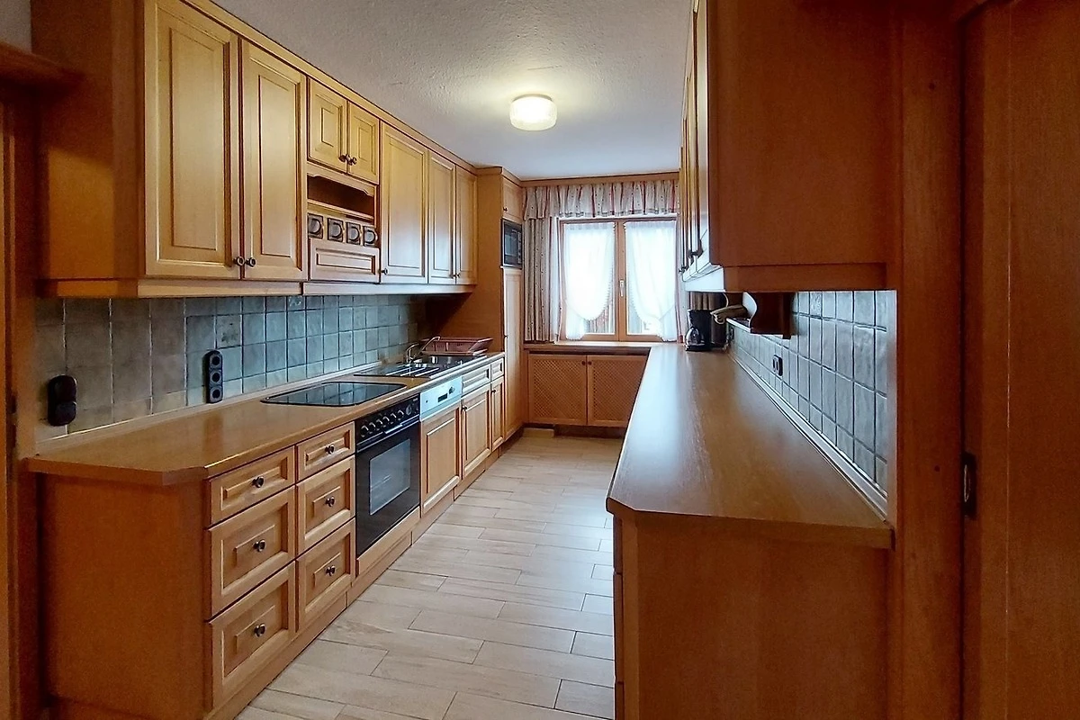 Die komplett ausgestattete Küche ist abgetrennt und verfügt über Kühlschrank, Backofen, Kochfeld, Spülmaschine, Mikrowelle, Kaffeemaschine, Wasserkocher, Toaster und ausreichend Geschirr.
