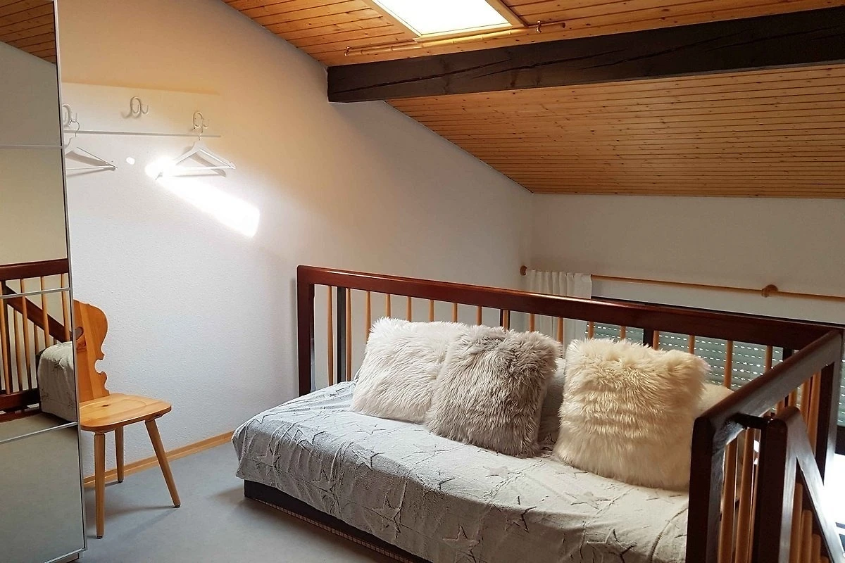 Das offene Schlafzimmer auf der Galerie verfügt über ein Doppelbett und eine Schlafcouch (für 2 Personen).