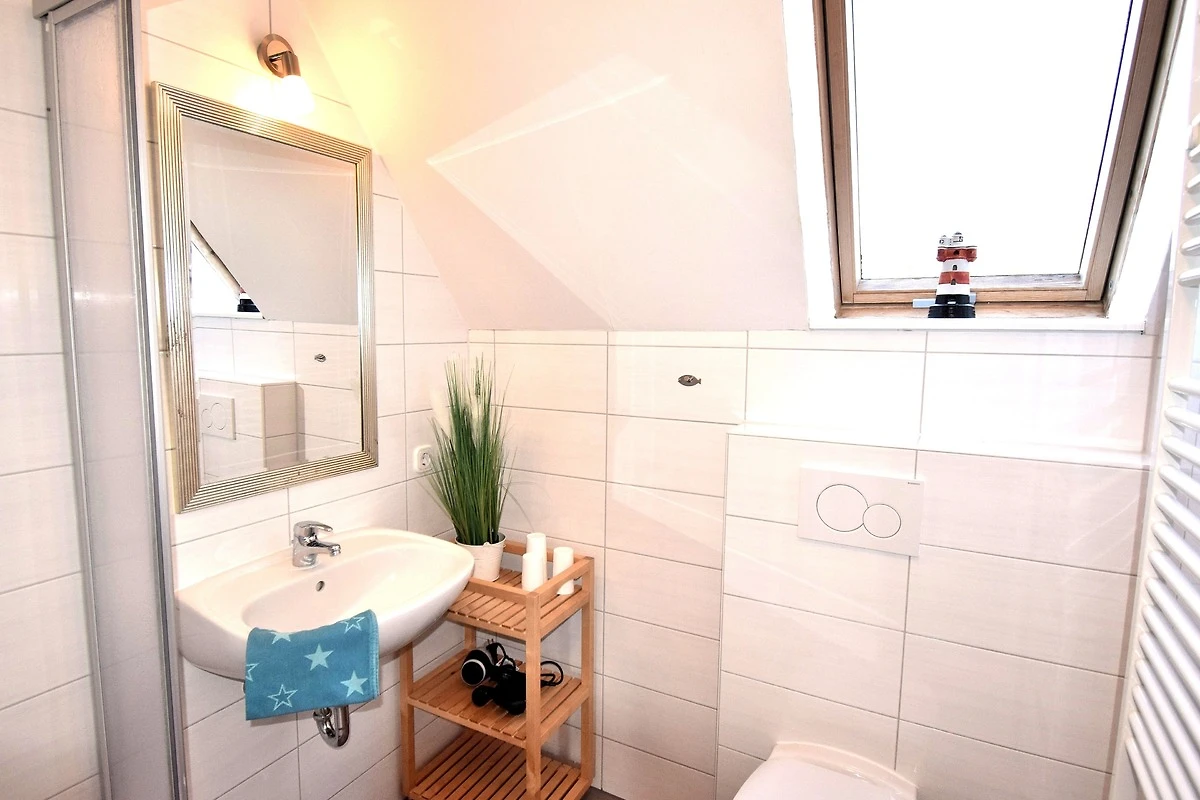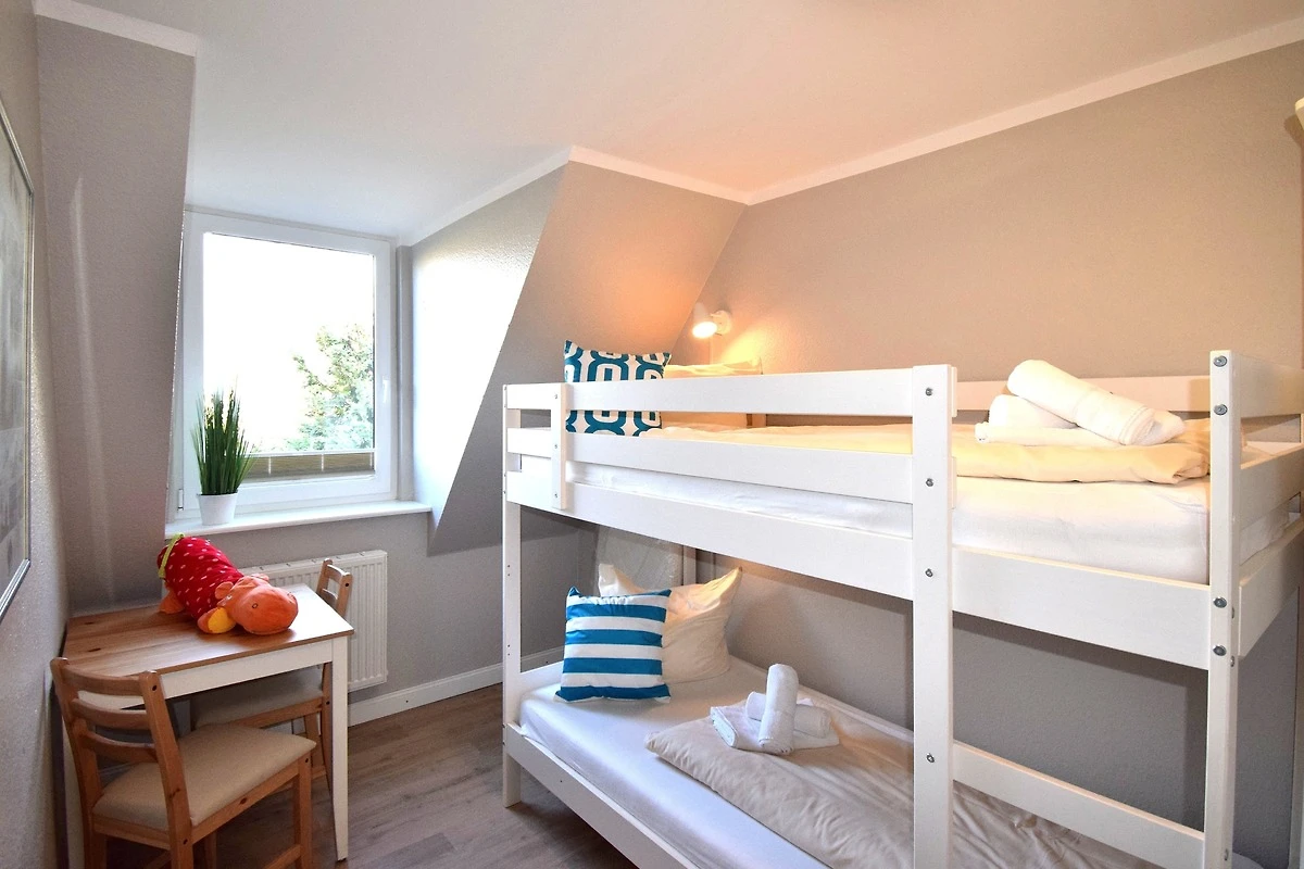 Ein Schlafzimmer ist mit 1 Doppelbett ausgestattet und 1 Schlafzimmer mit 1 Etagenbett. Das dritte Schlafzimmer befindet sich im Spitzboden und ist ausgestattet mit 2 Einzelbetten.