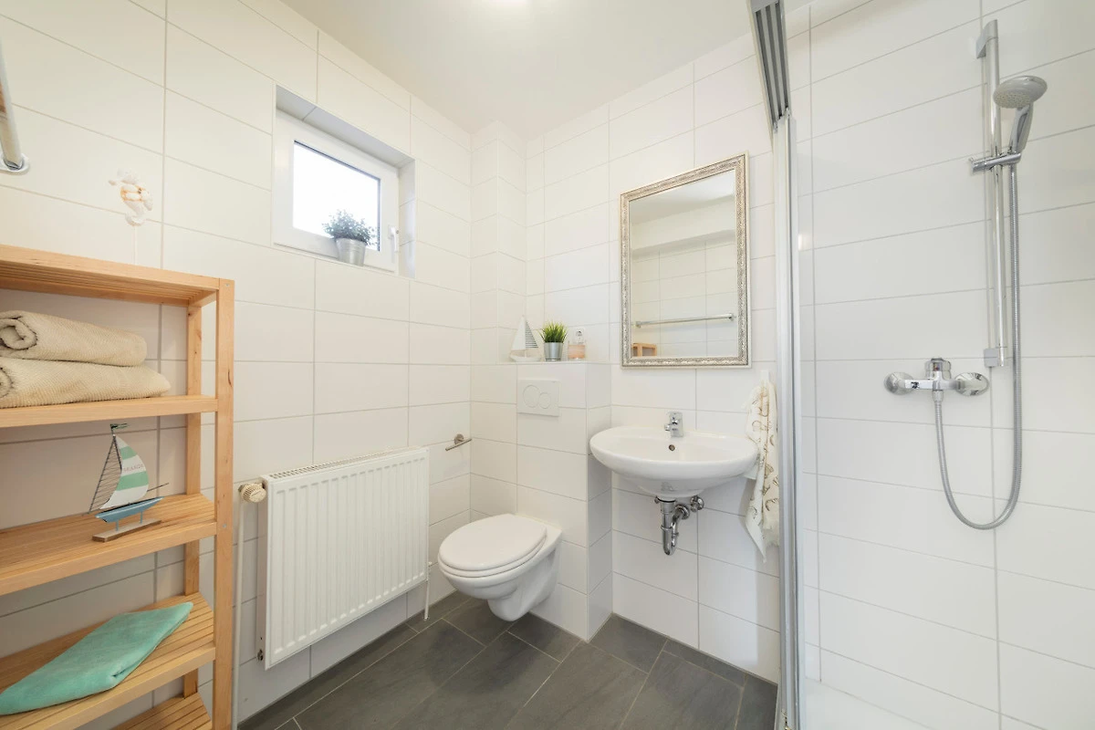 Es gibt zwei Duschbäder mit WC.