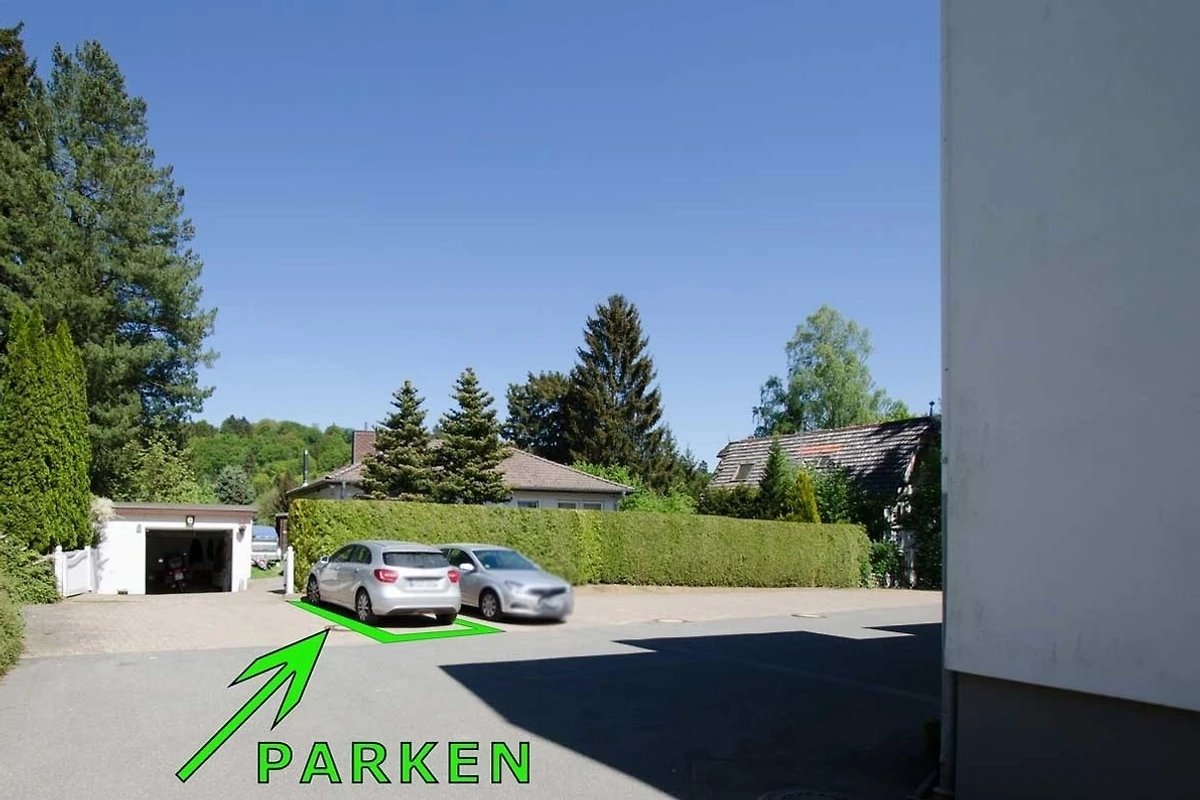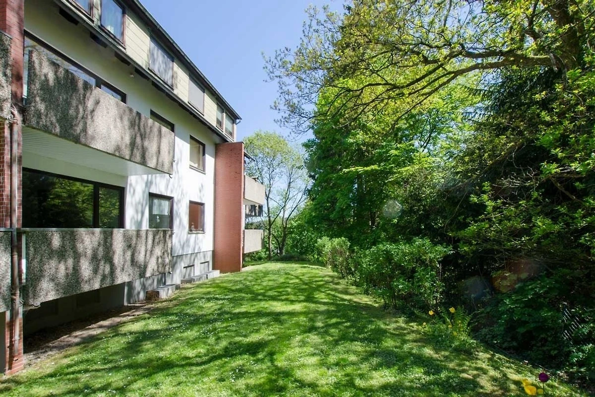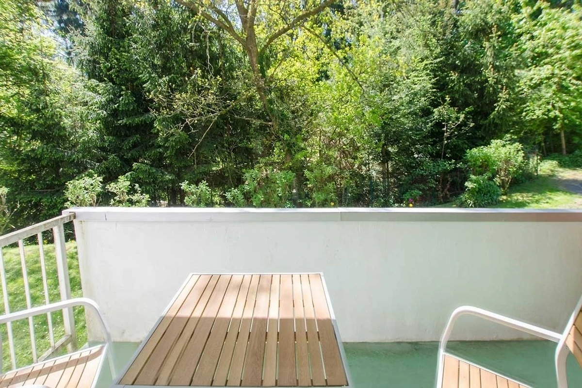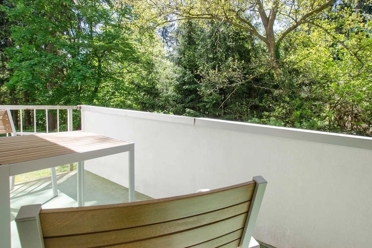 Auf dem möblierten Balkon haben Sie ein Blick ins Grüne.