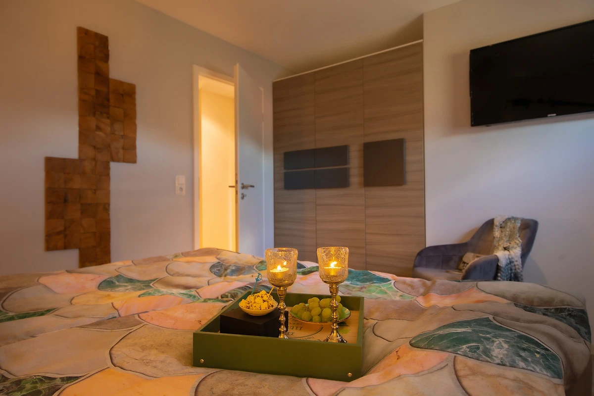 1 Schlafzimmer mit Doppelbett- Boxspringbett, Kleiderschrank, SAT- TV