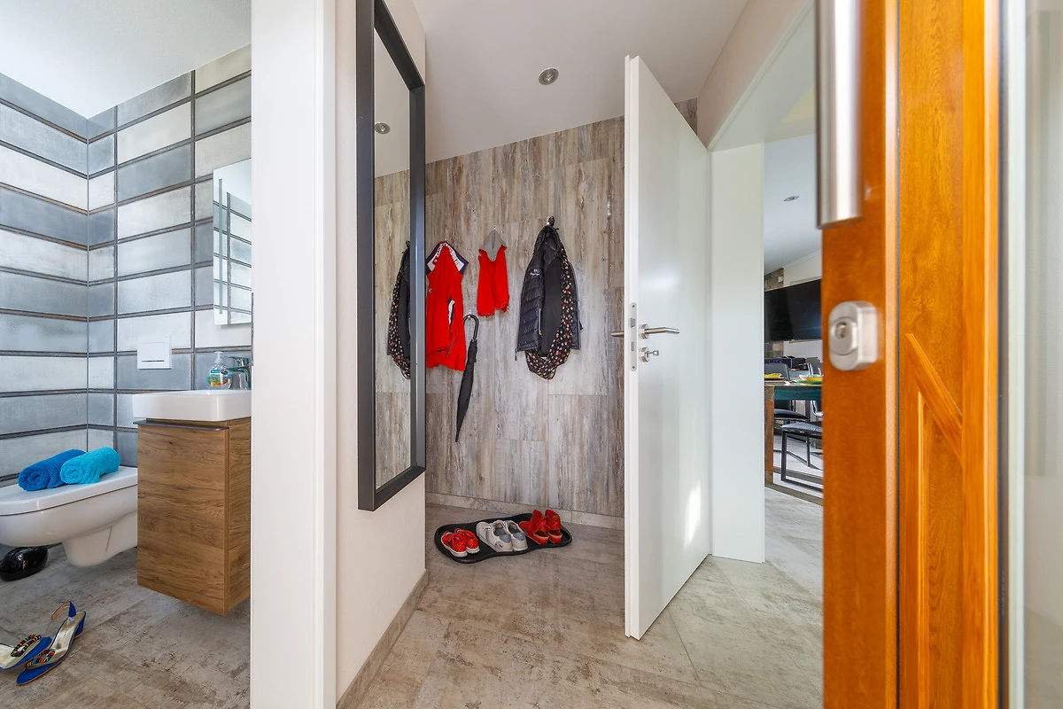 1 Duschbad mit ebenerdiger Regendusche und Föhn