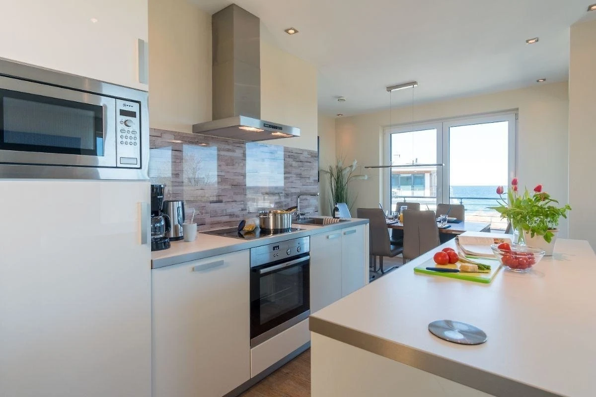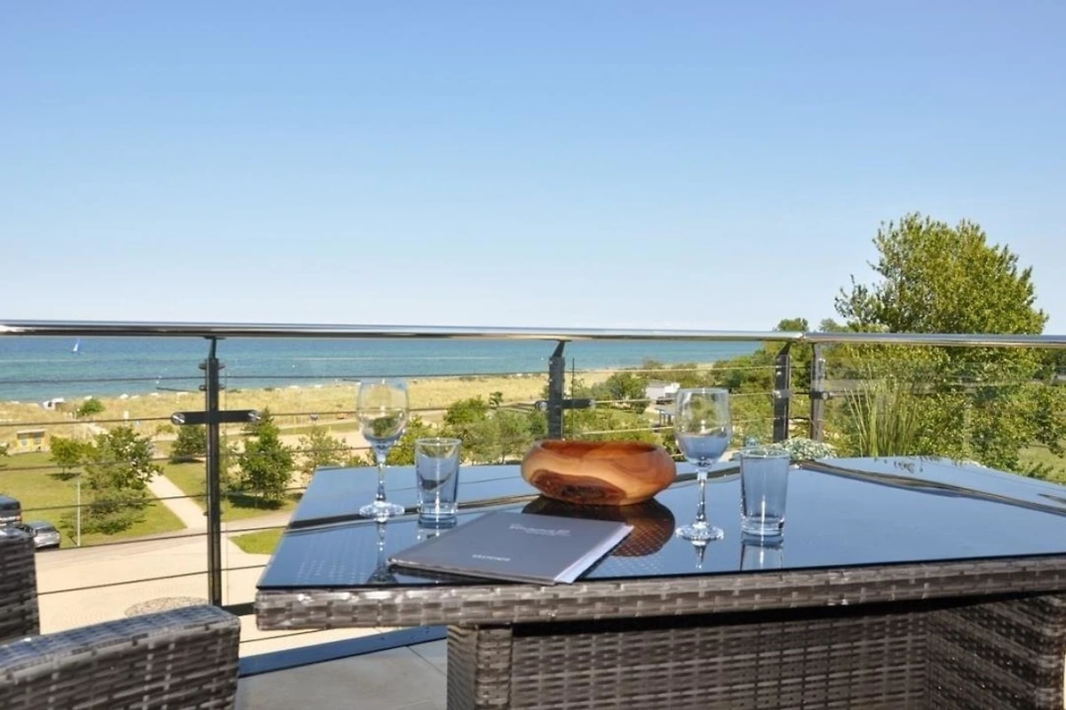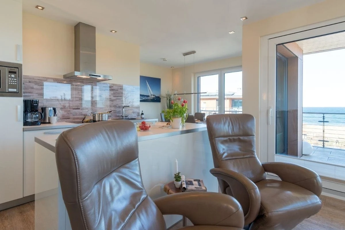- Lichtdurchfluteter, offener Wohn-Koch-Ess-Bereich mit grosser Fensterfront, freiem Ostseeblick und direktem Zugang zur umlaufenden Dachterrasse
