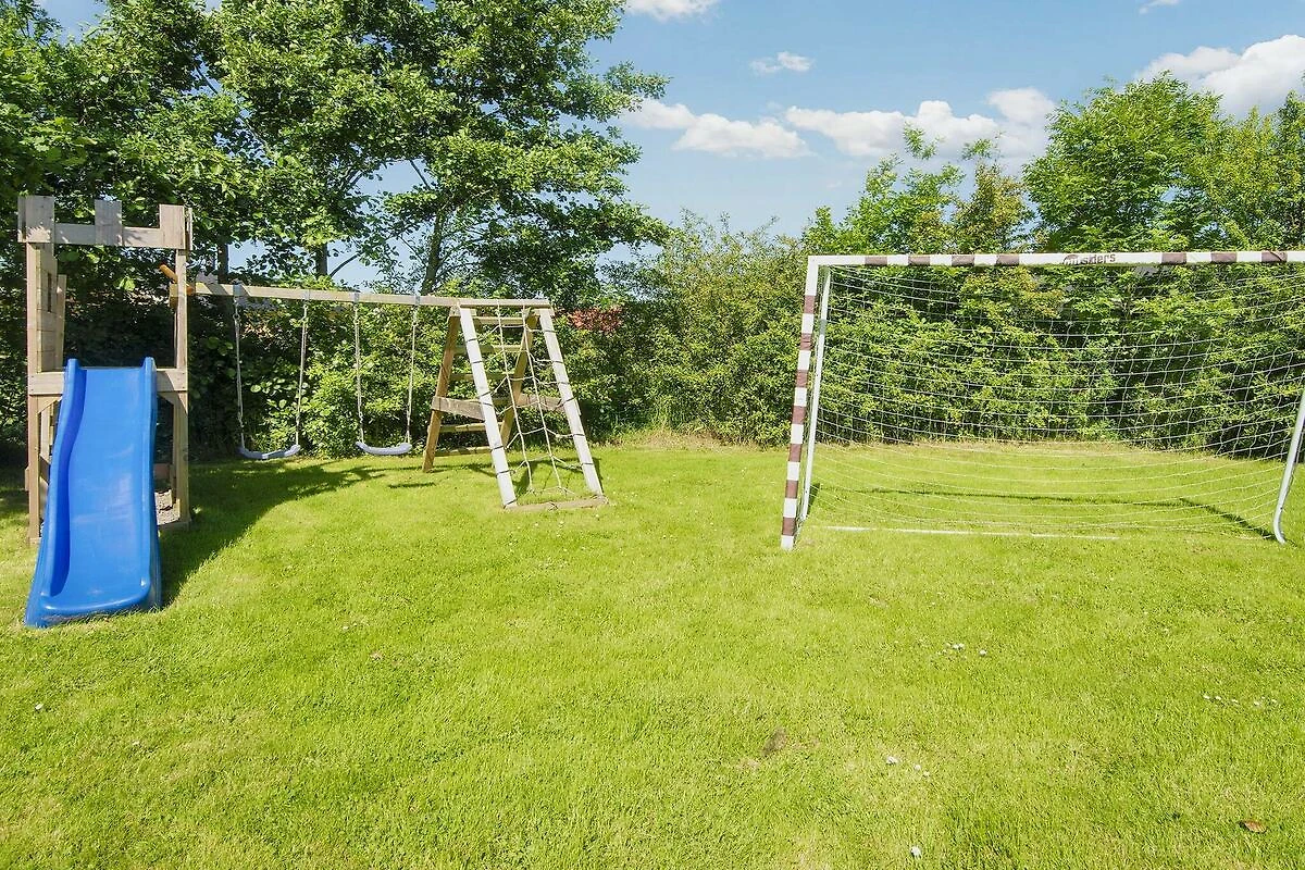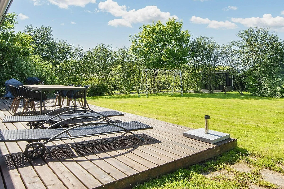 Aufenthaltsraum(Doppelklappbett ), Küche(Kochherd(elektrisch), Dunstabzugshaube, Kaffeemaschine, Mikrowelle, Spülmaschine, Kühl-/Gefrierkombination), Wohn-/Schlafzimmer(TV(Deutsch Fernsehsender, dänische Fernsehsender), DVD-Spieler, Spielkonsole, Hochstuhl), Schlafzimmer(Doppelbett), Schlafzimmer(Doppelbett), Schlafzimmer(Doppelklappbett , Kinderbett), Badezimmer(Waschbecken, Dusche, Toilette, Waschmaschine), Whirlwanne(im Innenbereich, erwärmt, 2 Personen), Sauna(im Innenbereich, 4 Personen), Heizung(elektrisch), Gartenmöbel, Spielgeräte, Fußballtor, Luft-Luft-Wärmepumpe