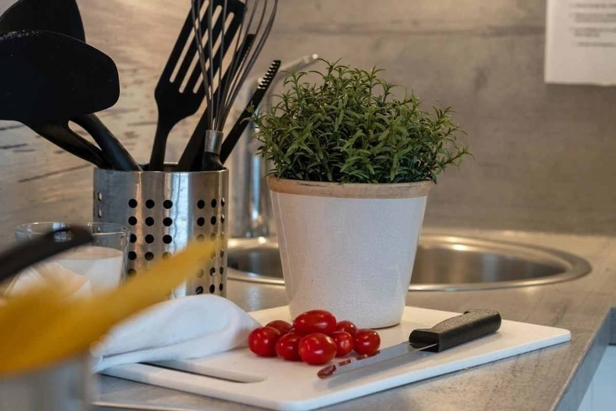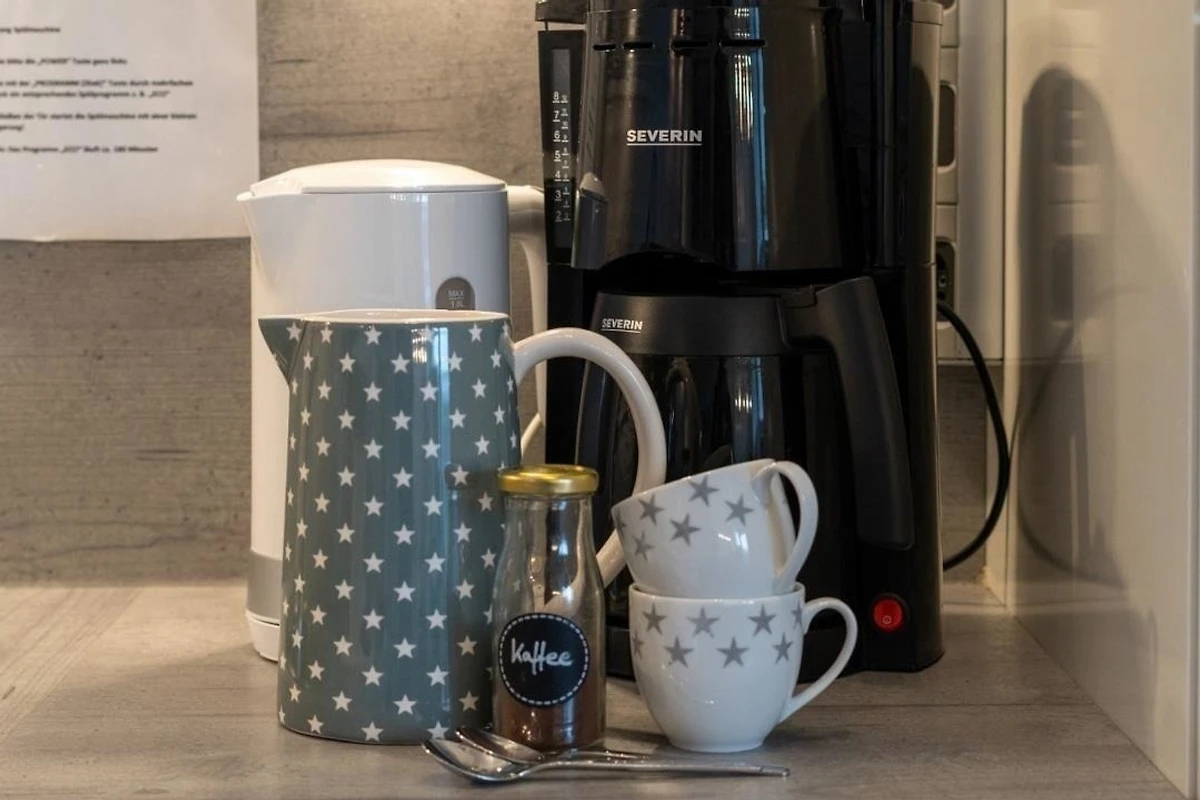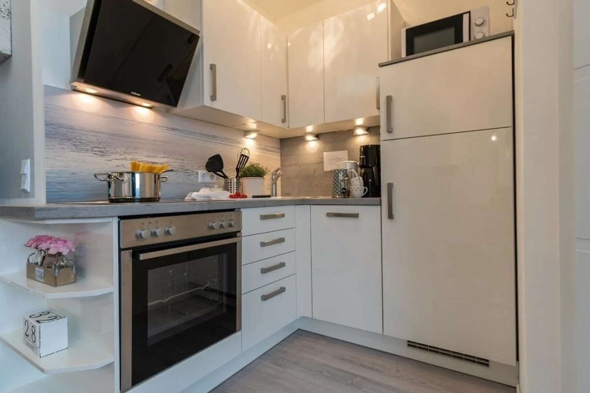 Die Küche ist mit allem, was man im Urlaub braucht, ausgestattet. Zusätzlich stehen Ihnen noch ein Backofen und ein Geschirrspüler zur Verfügung.