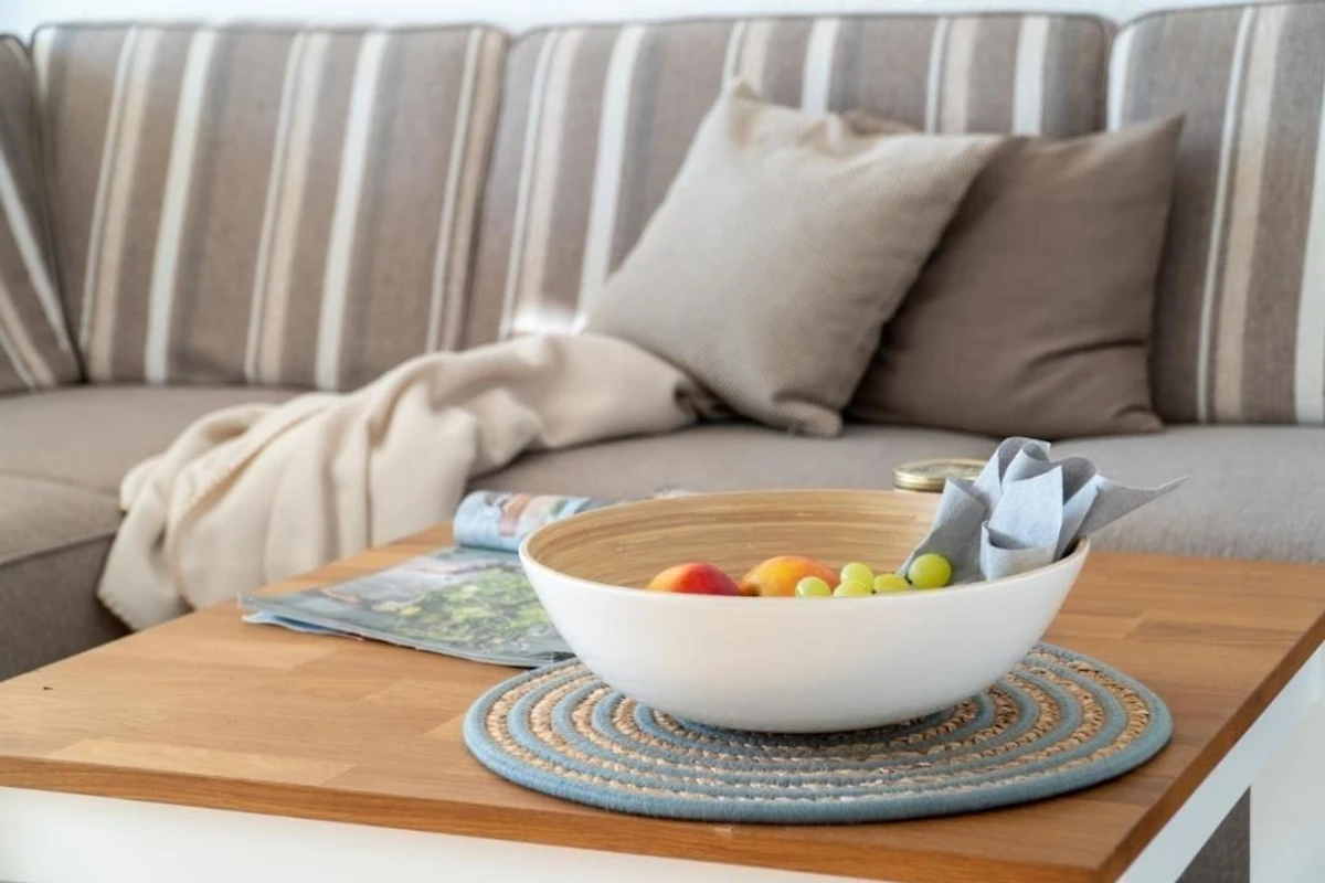 Der grosszügige Wohn-Schlafbereich verfügt über ein grosses, gemütliches Ecksofa, einen Flatscreen- TV und vieles mehr. Im hinteren Bereich befindet sich das komfortable Doppelbett für zwei Personen. Die Küche ist mit allem, was man im Urlaub braucht, ausgestattet. Zusätzlich steht Ihnen noch eine Waschmaschine und ein Geschirrspüler zur Verfügung.