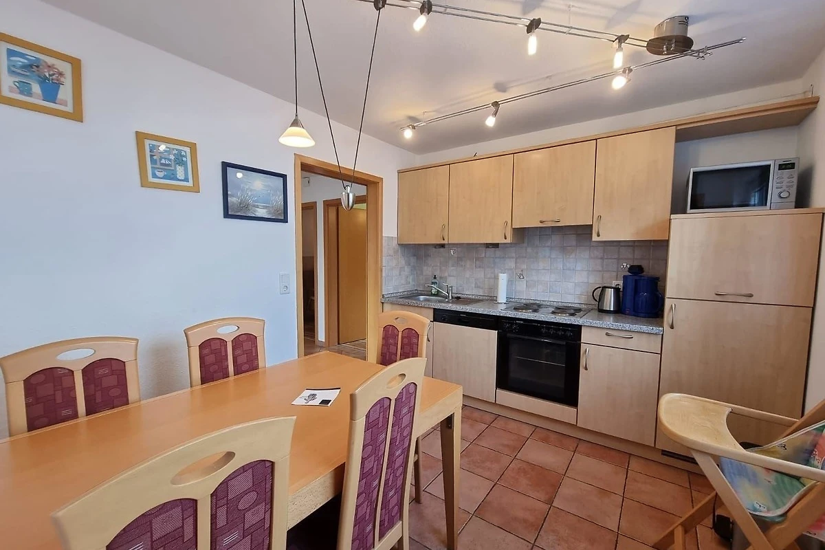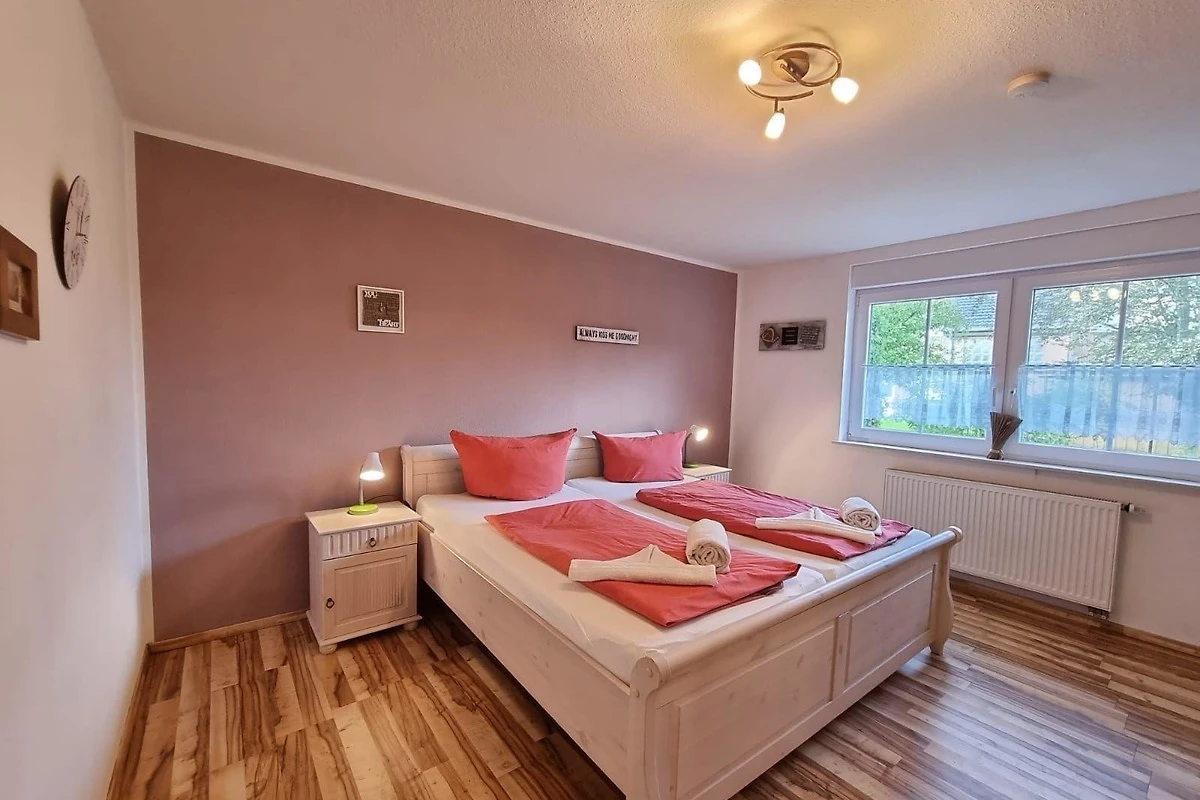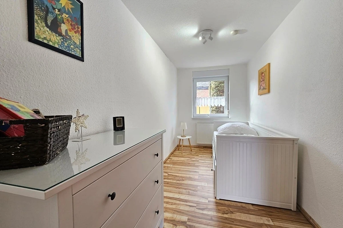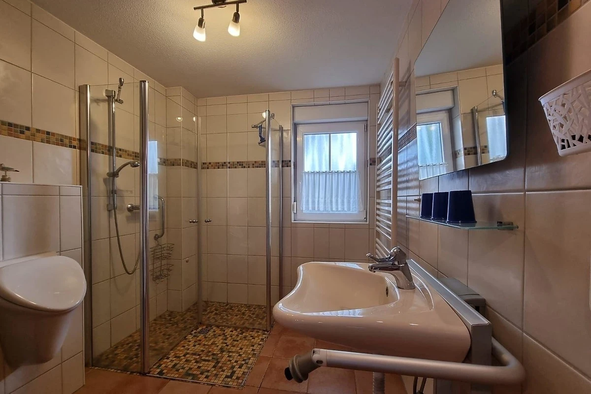 Die Ferienwohnung bietet eine hervorragende Ausstattung und viel Platz für individuelle Bedürfnisse. Sie verfügt über drei Schlafzimmer: eines mit einem gemütlichen Doppelbett und zwei weitere mit jeweils einem Einzelbett. Das Badezimmer ist mit einer bodengleichen Dusche und einem Fenster ausgestattet, ergänzt durch einen Kosmetikspiegel und ein Starterset mit Pflegeprodukten.