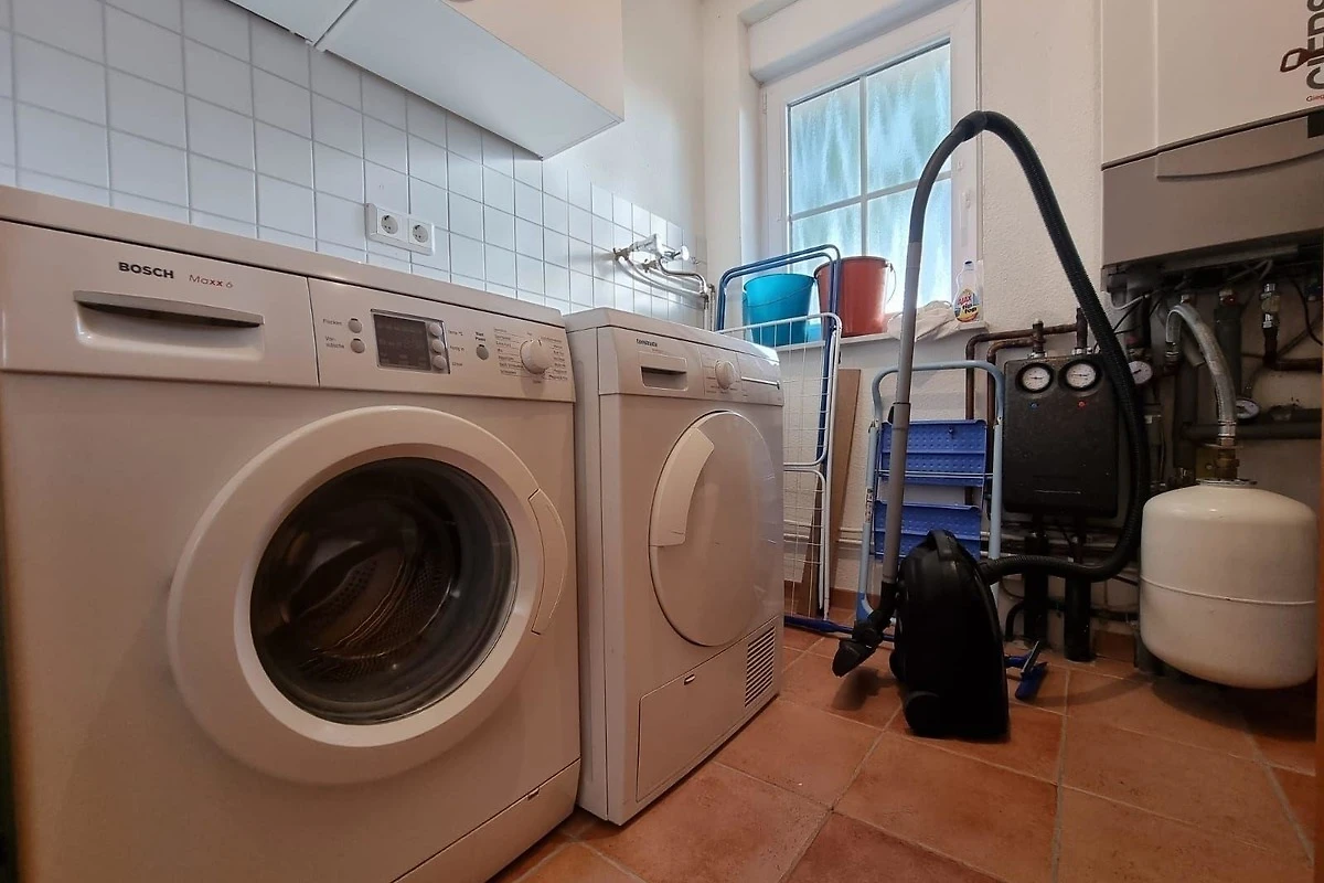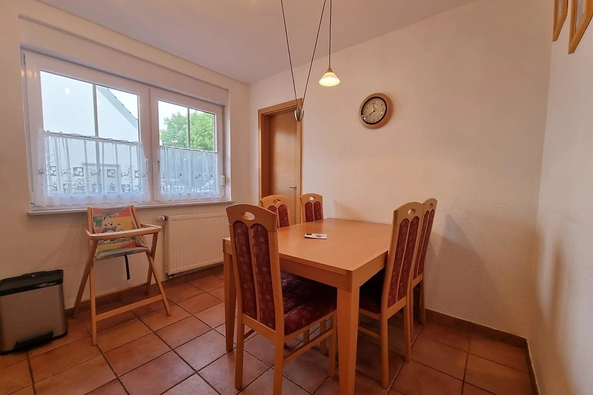 WLAN ist verfügbar, ebenso eine HiFi-Anlage und ein TV für entspannende Abende. Für die kleinen Gäste steht ein Hochstuhl bereit. Die Wohnung ist allergikergeeignet und bietet zusätzliche Annehmlichkeiten wie eine Waschmaschine, Wäschetrockner und Parkmöglichkeiten.