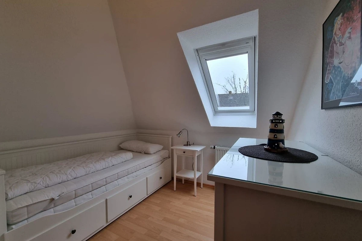 Die Ferienwohnung liegt in einem charmanten Stadtteil von Norden, der sich durch eine ruhige und idyllische Atmosphäre auszeichnet. Die Umgebung bietet zahlreiche Aktivitäten für Erholungssuchende und Abenteurer. In nur 3 km Entfernung befindet sich der malerische Strand, ideal zum Baden und für Wassersportarten wie Windsurfen. Golfliebhaber finden in weniger als 5 km einen ansprechenden Golfplatz, während Reiter in der Nähe zahlreiche Ställe und Reitmöglichkeiten entdecken können. Walking- und Radwege laden zu entspannenden Erkundungstouren ein. Für Familien gibt es Spielplätze und Minigolf in der Umgebung. Darüber hinaus können Massagen, Kosmetikbehandlungen und Bootsausflüge in der näheren Umgebung genossen werden. Die Anreise gestaltet sich dank der guten Verkehrsanbindungen unkompliziert. Die gemütliche Lage der Ferienwohnung bietet somit die perfekte Basis für einen abwechslungsreichen Aufenthalt.