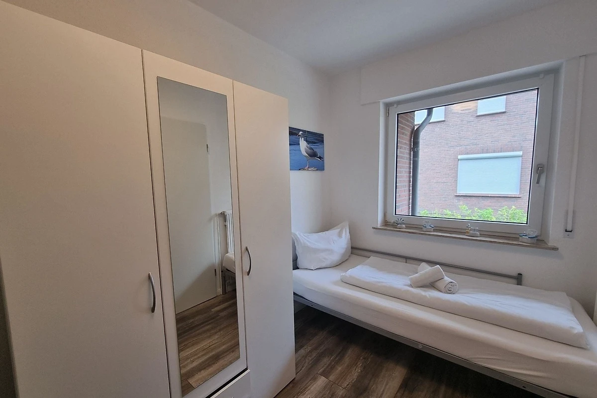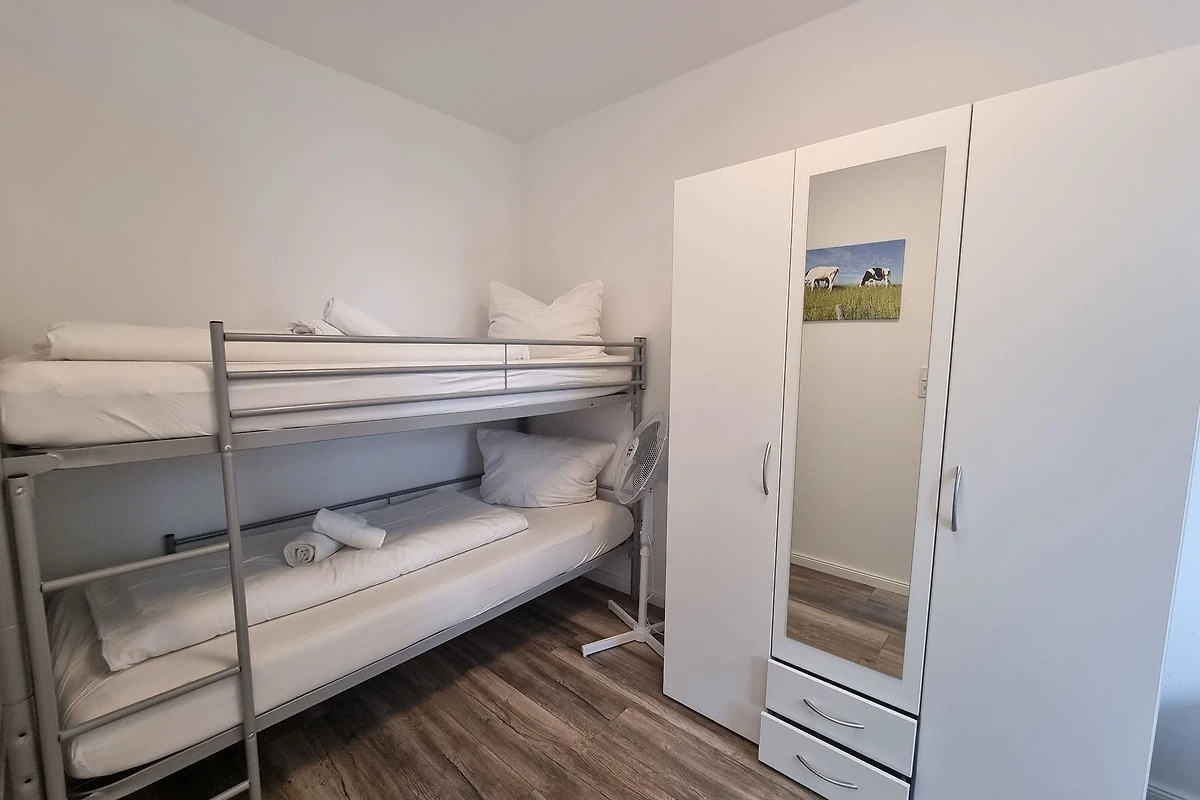 Die Ferienwohnung befindet sich in einem ruhigen Wohngebiet in Nessmersiel, einem charmanten Küstendorf an der Nordsee. Die Anreise ist problemlos, da der Ort gut mit dem Auto oder den öffentlichen Verkehrsmitteln erreichbar ist. Der nächste Strand liegt nur etwa 1,5 Kilometer entfernt und bietet zahlreiche Möglichkeiten für Wassersport und entspannende Tage am Meer. Radfahrer schätzen die malerischen Radwege in der Umgebung, während Naturfreunde beim Vögelbeobachten oder Nordic Walking auf ihre Kosten kommen. Somit ist auch das Angeln in der Nähe leicht möglich. Für Familien gibt es Spielplätze und Freizeitmöglichkeiten, während Wellnessliebhaber Massagen und Kosmetikbehandlungen in der Umgebung geniessen können. Kulturell Interessierte können in den nahegelegenen Museen auf Entdeckungsreise gehen. In nur wenigen Kilometern Entfernung findet sich zudem eine Vielzahl an Geschäften für den täglichen Bedarf und regionale Spezialitäten.