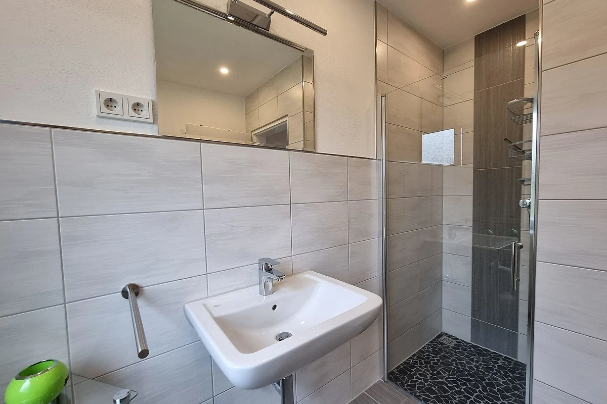 In dieser einladenden Ferienwohnung erwartet Gäste eine durchdachte Raumaufteilung und moderne Ausstattung. Sie verfügt über zwei gemütliche Schlafzimmer, die mit einem Doppelbett und drei Einzelbetten ausgestattet sind, sowie einem Wohnschlafzimmer mit einer praktischen Schlafcouch. Das offene Küchenkonzept bietet alle notwendigen Annehmlichkeiten wie einen Elektro-/Gasherd, Backofen, Kühlschrank, Kaffeemaschine, Toaster und genügend Stauraum. Ein Esstisch lädt zum gemeinsamen Essen ein. Das Badezimmer ist mit Dusche, Fenster und einem Haartrockner ausgestattet. Allergikerfreundliche Einrichtungen sorgen für zusätzlichen Komfort, während WLAN und ein TV zur Verfügung stehen. Die Wohnung ist ideal für Familien, da ein Kinderhochstuhl bereitgestellt wird. Ein Parkplatz vor dem Haus sowie ein Starterset mit Reinigungsmitteln und Toilettenartikeln runden das Angebot ab. Brettspiele sorgen für Unterhaltung an entspannten Abenden.