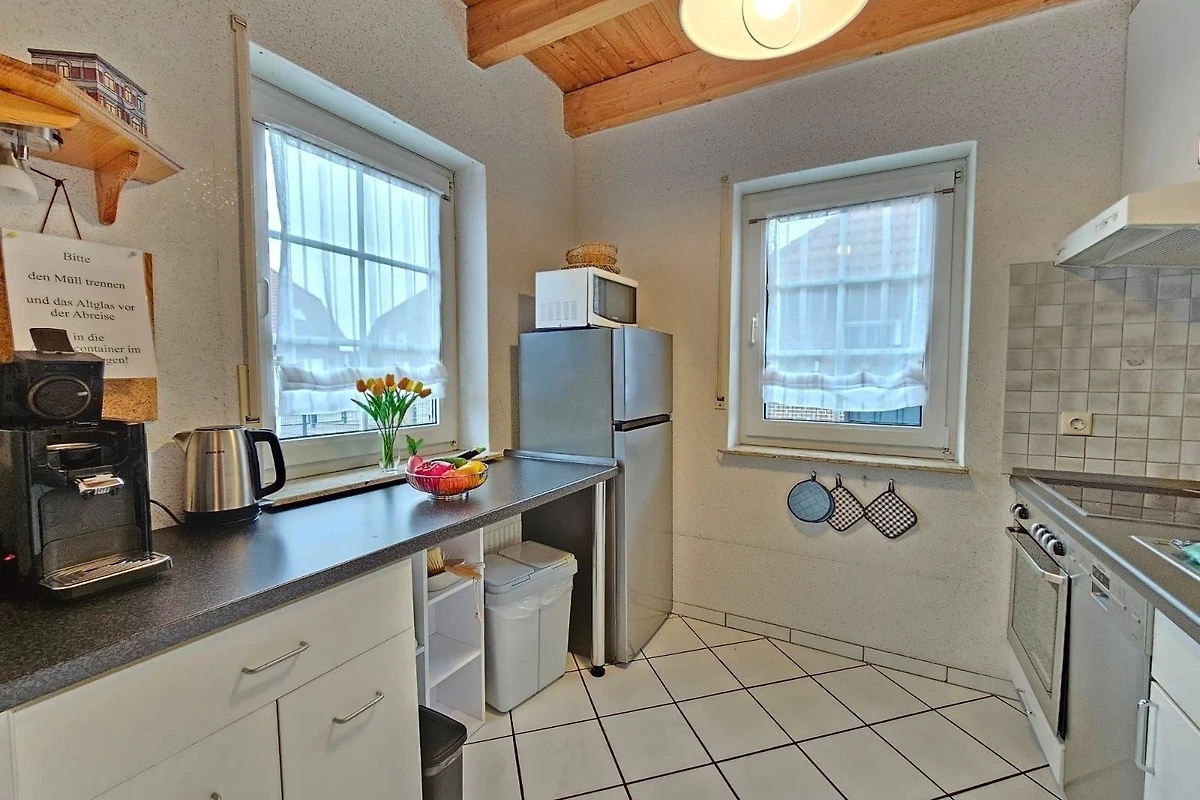 Diese grosszügige Ferienwohnung bietet auf 3 Schlafzimmern Platz für Erholung und Entspannung. Ausgestattet mit zwei Doppelbetten und zwei Einzelbetten, ist sie ideal für Familien oder Gruppen. Die offene Küche ist ein Highlight und verfügt über alle modernen Annehmlichkeiten, darunter einen Geschirrspüler, Elektro-/Gasherd, Backofen, Mikrowelle und Kühlschrank. Eine Kaffeemaschine und ein Toaster stehen ebenfalls bereit.