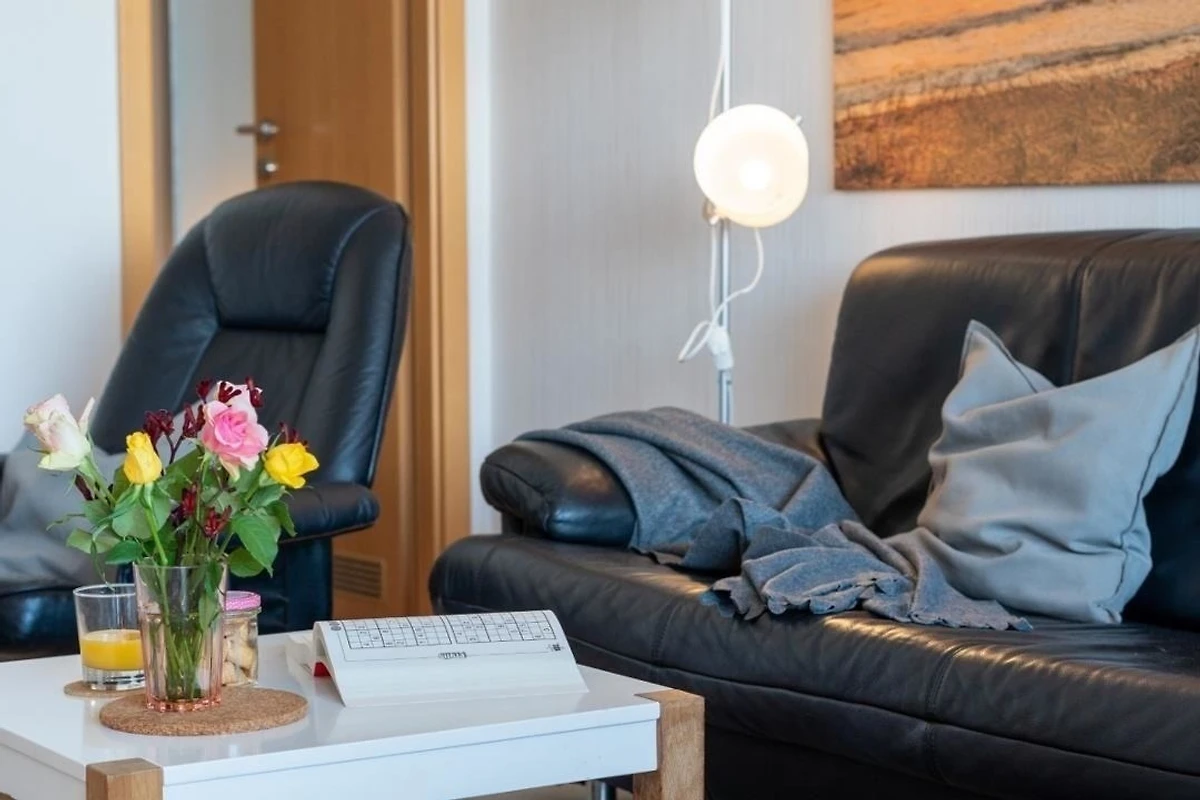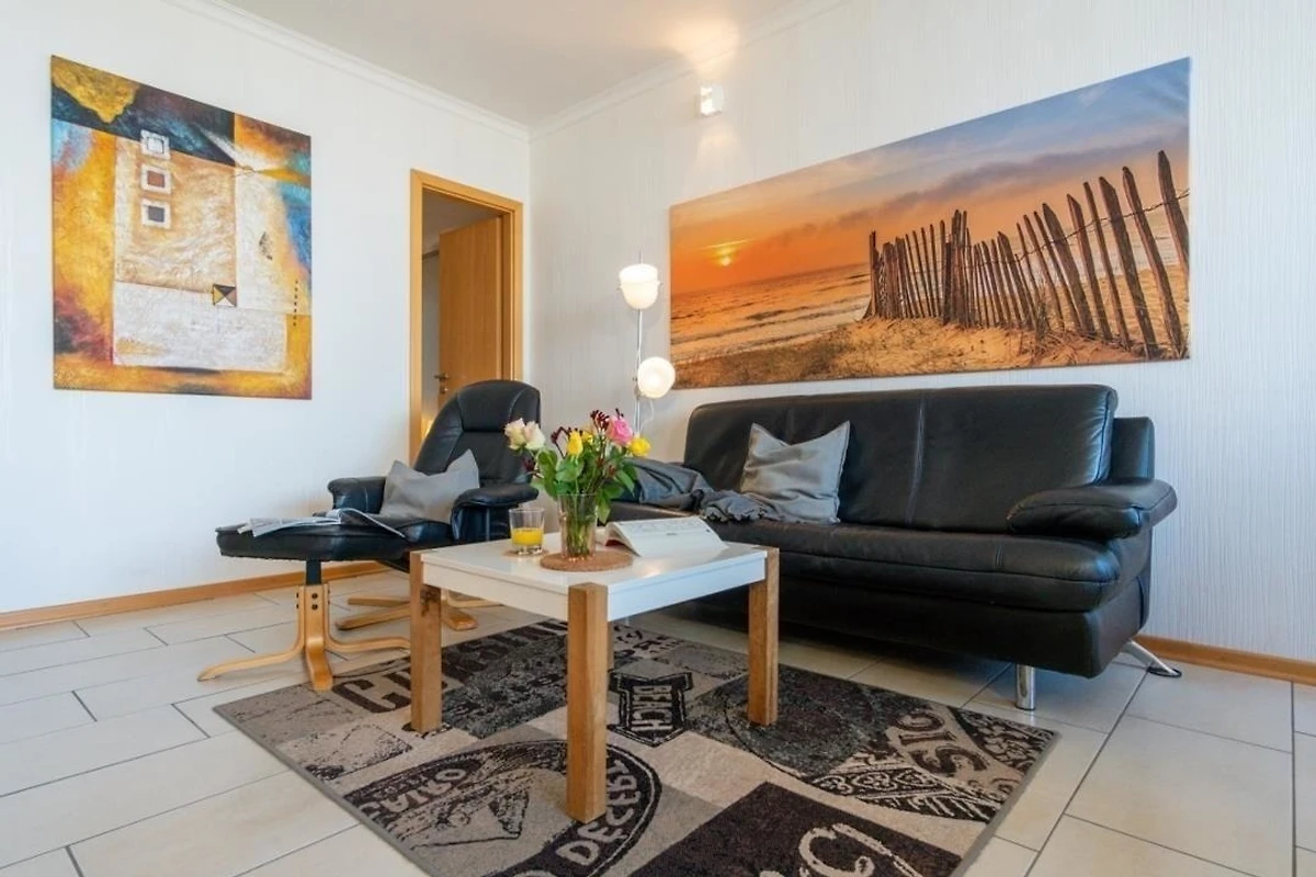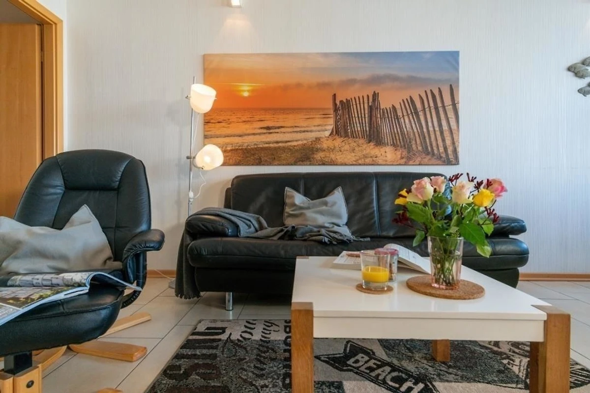 Die renovierte 2-Zimmer-Wohnung wurde zuletzt 2021 liebevoll modernisiert und verfügt über ein helles Wohnzimmer mit einer gemütlichen Sofaecke und eine grosszügige Essecke. Das angrenzende Alkoven-Schlafzimmer ist mit einem Doppelbett ausgestattet. Für die Urlaubsgarderobe steht Ihnen im Flur ein grosszügiger Kleiderschrank zur Verfügung. Das Kinderzimmer ist mit einem Etagenbett für zwei Kinder (auch für Teenager geeignet) eingerichtet und befindet sich neben der Küche. Die Küchenzeile wurde ebenfalls modernisiert und ist für Urlaubsbedürfnisse voll ausgestattet - ein Geschirrspüler ist ebenfalls vorhanden.