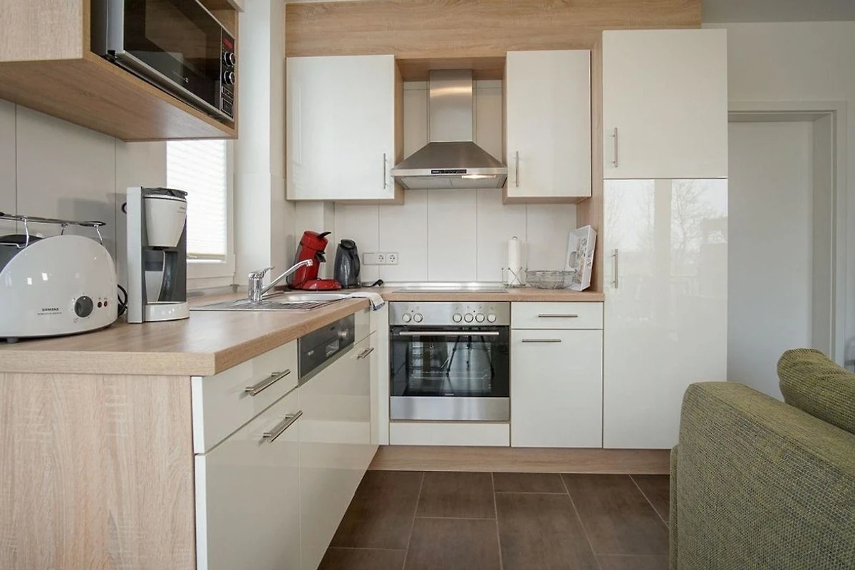 Die 52m²-Wohnung befindet sich im Erdgeschoss in der Anlage "Strandpark". Der lichtdurchflutete Wohnbereich ist mit einer gemütlichen Sofaecke, TV, Spielen, einem Kaminofen u.v.m. ausgestattet. Der offene Küchenbereich ist, für den Urlaubsbedarf, voll ausgestattet. Eine Kaffeemaschine gehört ebenso dazu, wie der Wasserkocher und ein Toaster. Geschirr und Besteck sind ausreichend vorhanden. Ausserdem stehen Ihnen noch ein Backofen, Geschirrspüler und eine Mikrowelle zur Verfügung. Im Elternschafzimmer finden Sie ein komfortables Doppelbett (2*90*200cm) und das Kinderzimmer verfügt über ein Kojenbett (90*200cm - auch für Teenager geeignet).