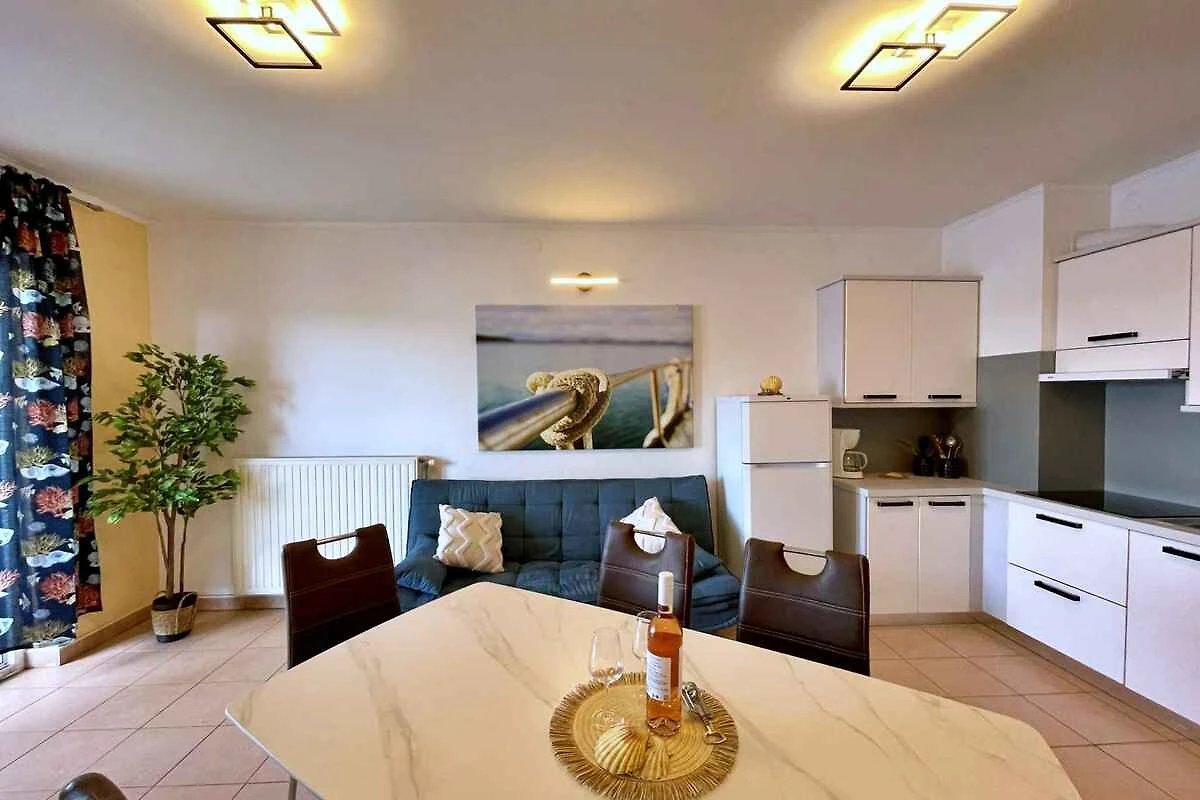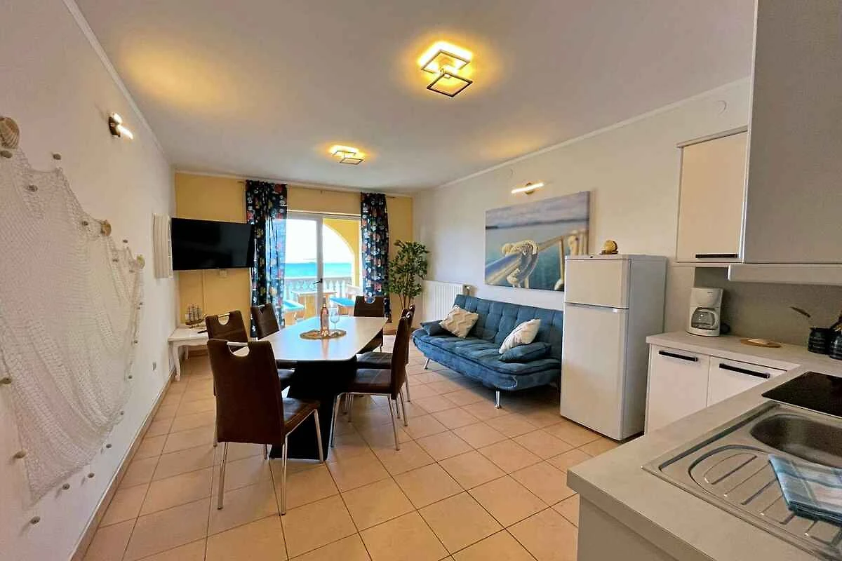 Die Ferienwohnung befindet sich in einem Apartementhaus und ist modern und zweckmässig eingerichtet. Das Grundstück liegt in einer FerienHaus-Siedlung, am Ortsrand. Auch wegen des Ausblicks vom Grundstück auf das Meer und der sonnigen Lage am Wasser ist das Domizil beliebt.