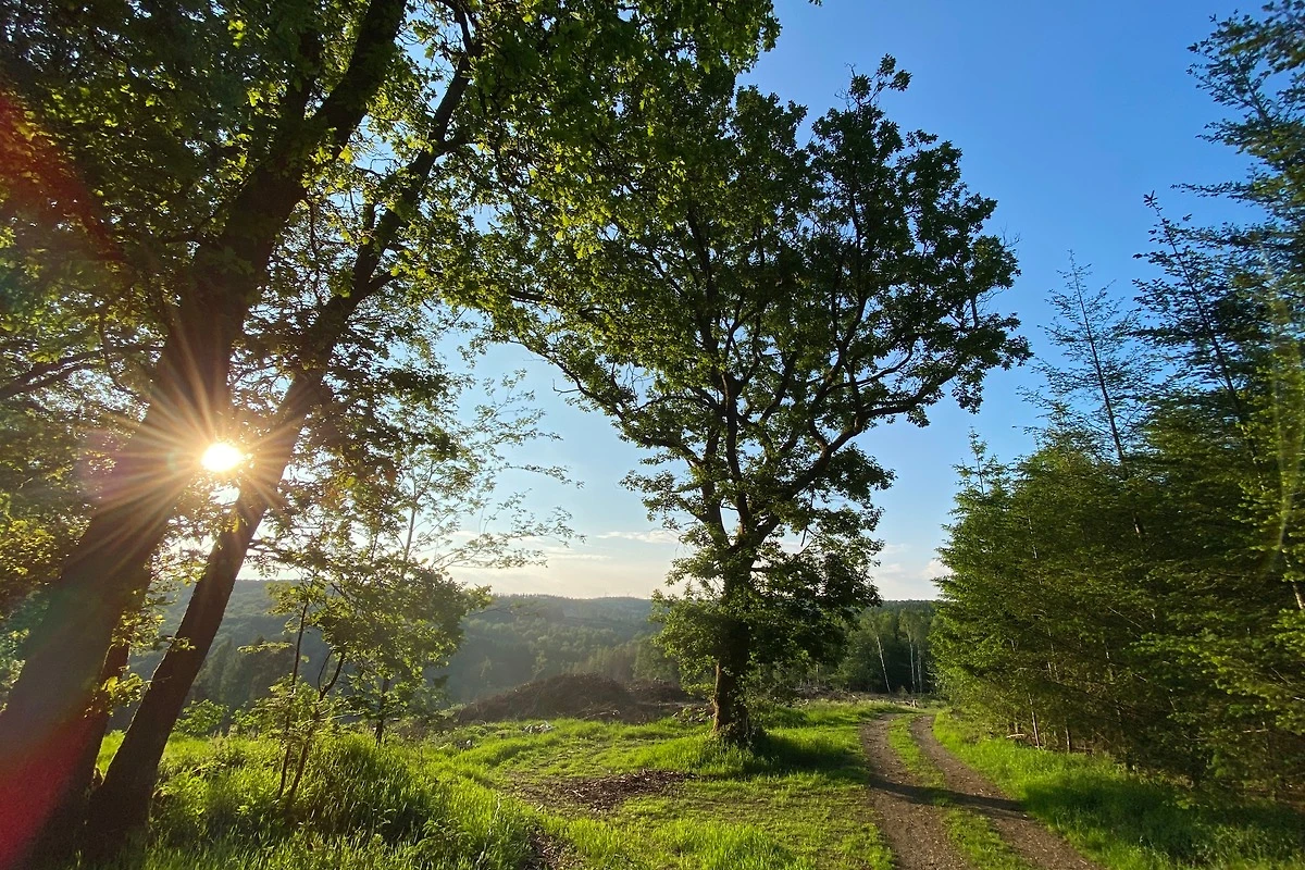 Hier erwarten Sie nun gefühlt unendlich viele, lange und auch kurze (Rund)Wander-/Radwege (für die Mutigeren sind auch Trails zu finden), die manchmal auch an kleinen Weihern oder Bachläufen entlang führen und natürlich eine ganze Masse an Ruhe und Natur pur.