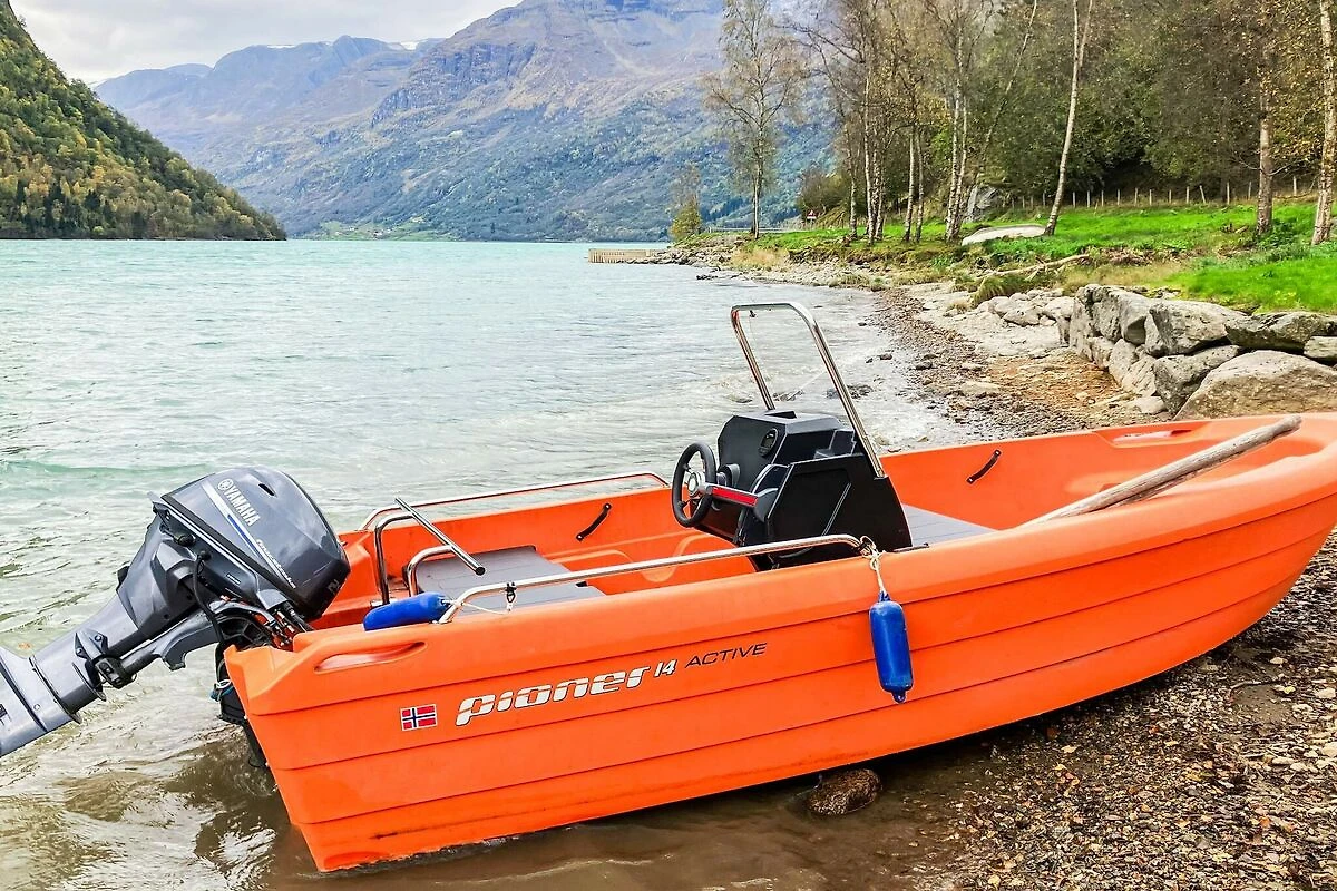 Gemütliches Ferienhaus in einer ruhigen Umgebung mit majestätischem Gebirge, Gletschern, klaren Gewässern und grünen Tälern. Im TV norwegische und einige internationale Fernsehsender über Allente. WLAN mit 50 Mbit. Im Zimmer mit Etagenbett hat die untere Koje eine Breite von 120 cm. Kinderbett (0-3 Jahre) kann auf Anfrage ausgeliehen werden. Zugang zum Gefrierschrank etwa 130 m entfernt. Ca. 10 m zum Parkplatz. In diesem Ferienhausgebiet sind es 10 m zwischen den einzelnen Ferienhäusern, die schön gelegen, mit Bäumen zwischen den einzelnen Häusern stehen. Kurzer Weg zu berühmten Naturerlebnissen wie Briksdalsbreen, Strynefjellet und Geiranger. Hier finden Sie eine herrliche Natur mit einer Kombination aus schneebedeckten Berggipfeln, mächtigen Gletschern, Fjorden und kristallklaren Seen sowie gute Wandermöglichkeiten in der wunderschönen Natur. Im ca. 250 m entfernten See Oldevannet können Sie Ihr Anglerglück nach Forelle und Saibling testen. Filetierbank unter Dach, bei viel Fisch bitte die Filetierbank draußen benutzen. Boot zu mieten: Pioner 14 Fuß mit 25 PS Motor, NOK 200 für max 3 Stunden