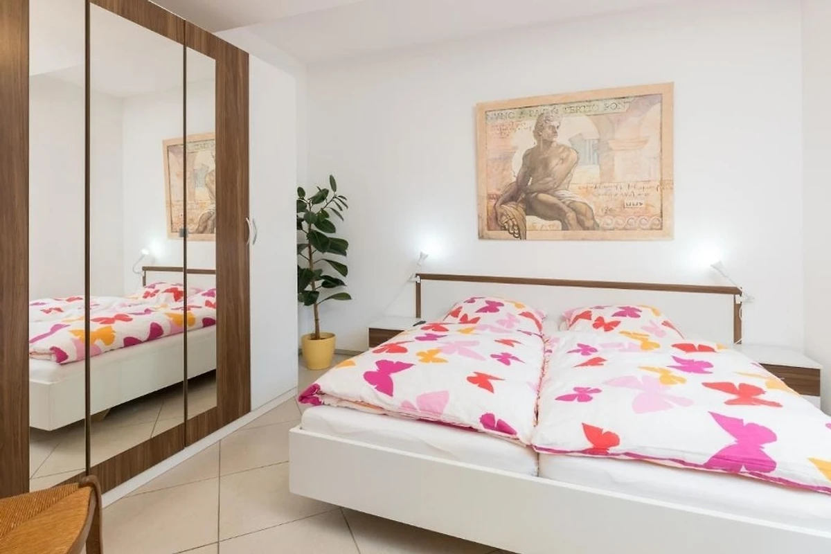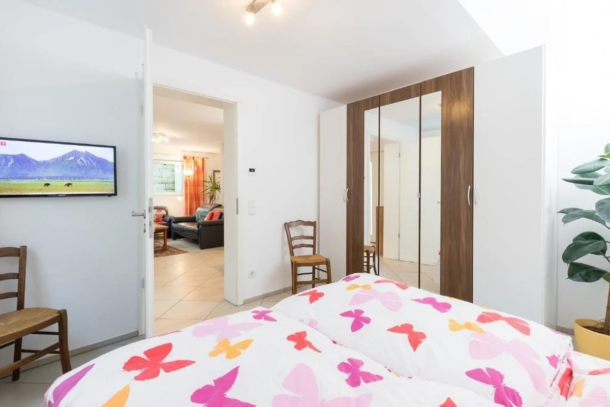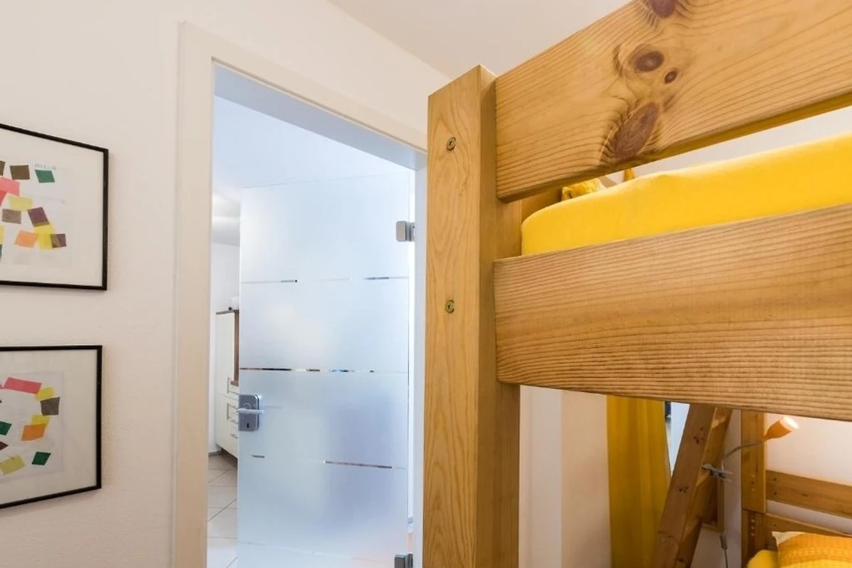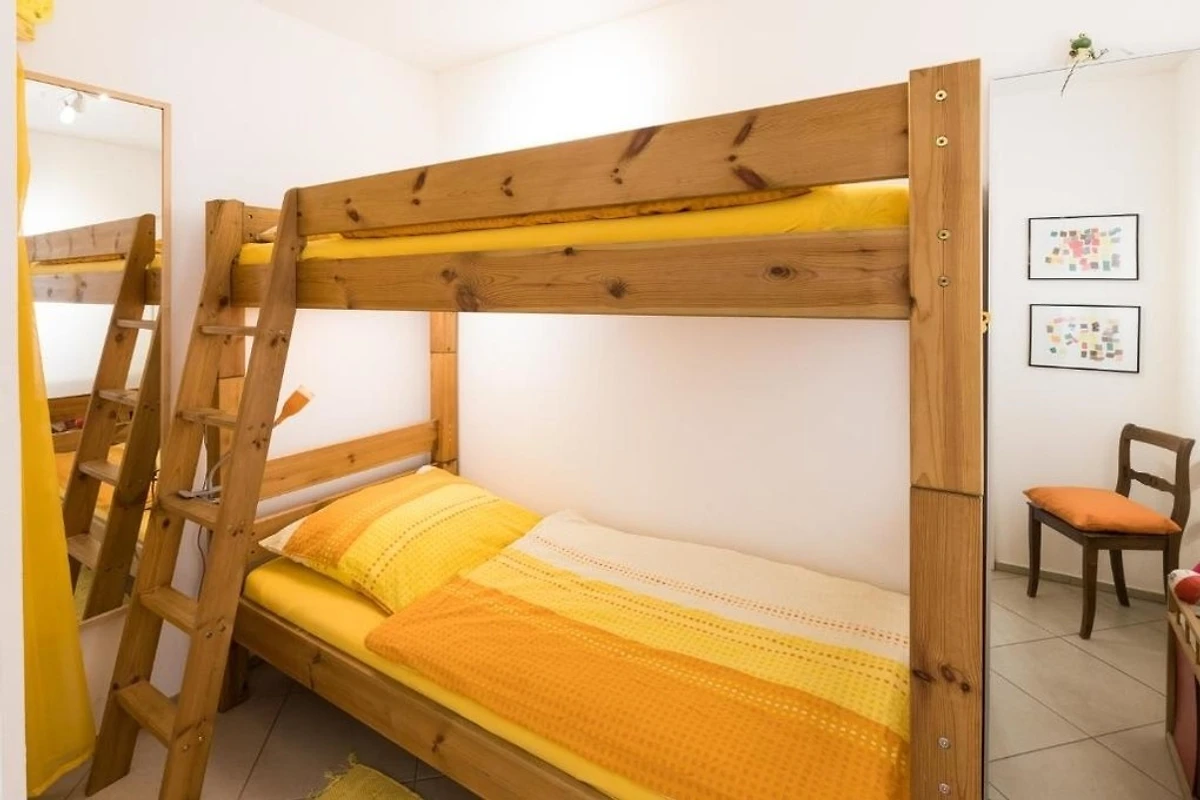 Eine 85 qm grosse und moderne Ferienwohnung erwartet Sie. Die Wohnung verfügt über zwei separate Schlafzimmer - ein Schlafzimmer mit grossem Doppelbett, das zweite Schlafzimmer für zwei Kinder im Etagenbett. Treten Sie ein in unseren grosszügigen Wohnbereich mit offener voll ausgestatter Küche und Essbereich sowie Terrassenausgang. HIer gibt es zudem Schlafmöglichkeit für zwei weitere Personen auf zwei Schlafcouchen.
