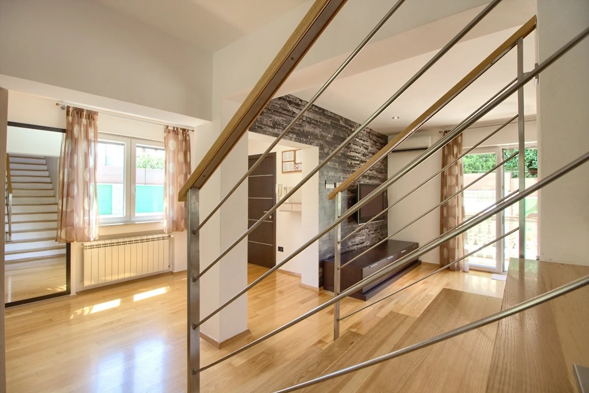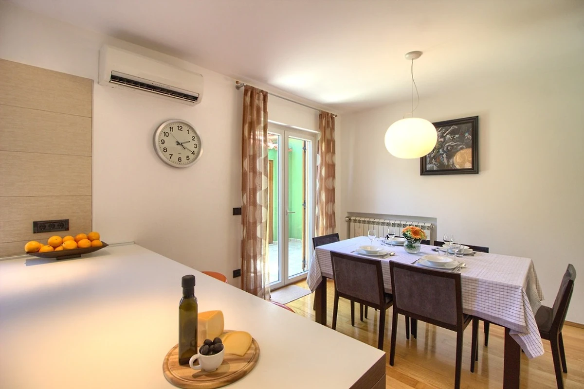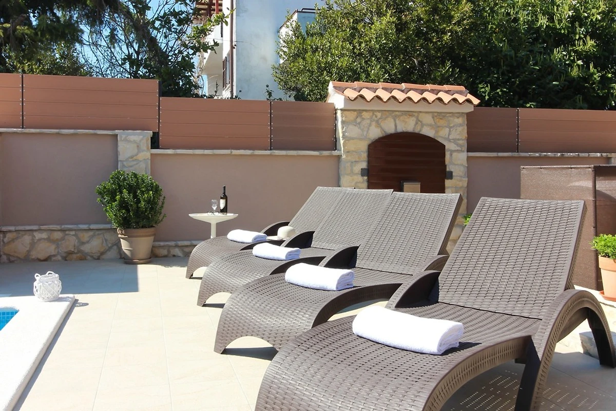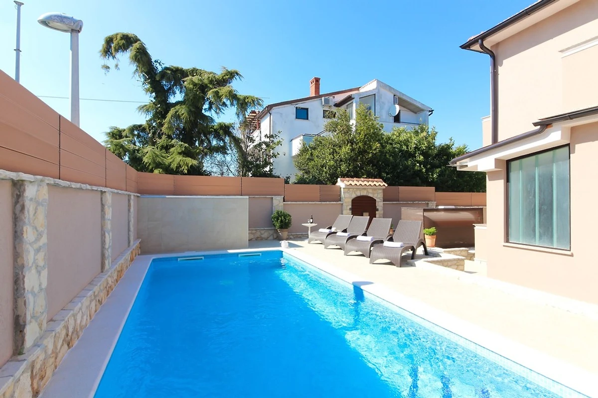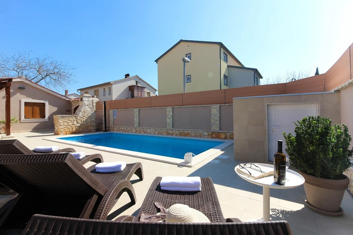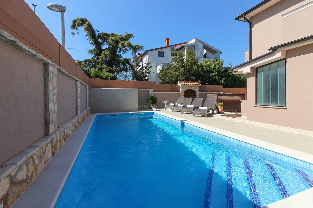 Wenn Sie nach einer modernen Villa mit privatem Pool in einem ruhigen Vorort von Pula suchen, ist die Villa Magnifica die perfekte Wahl für einen erholsamen Urlaub. Es ist 2 km vom Zentrum von Pula entfernt, das reich an vielen Sehenswürdigkeiten ist, und 2,5 km von schönen Stränden entfernt. Die Villa erstreckt sich über 450 qm. Die Innenfläche beträgt 150 qm und ist schön und modern eingerichtet. Die Villa verfügt über einen privaten Pool (24qm) und bietet Platz für bis zu 5 Gäste. Es verfügt über 3 Schlafzimmer - eines mit einem Doppelbett 180 * 210 cm, eines mit einem Doppelbett 160 * 200 cm und eines mit einem Einzelbett 90 * 200 und 3 Badezimmer - ein Badezimmer mit WC, Dusche und Badewanne im Obergeschoss, ein Badezimmer mit Toilette, Waschmaschine und Trockner im Erdgeschoss und ein Badezimmer mit Toilette und Dusche am Pool. Das Wohnzimmer ist groß und komfortabel, hat einen Fernseher und ist mit dem Esszimmer und der Küche verbunden, die komplett mit den notwendigen Kochutensilien ausgestattet ist. Im Garten am Pool gibt es eine Außendusche, Liegestühle, Sonnenschirme und viel Platz neben dem Grill, wo Sie sich wie ein echter Chef fühlen können, während Sie Köstlichkeiten für Familie oder Freunde zubereiten. Der Garten ist von hohen Mauern umgeben, sodass Sie eine private Atmosphäre genießen können. Dieses Ferienhaus mit Pool in Pula verfügt auch über eine Parkgarage. Die Villa ist außerdem voll klimatisiert und verfügt über kostenfreies WLAN. Geschäfte, Restaurants und Bars sind zu Fuß erreichbar.