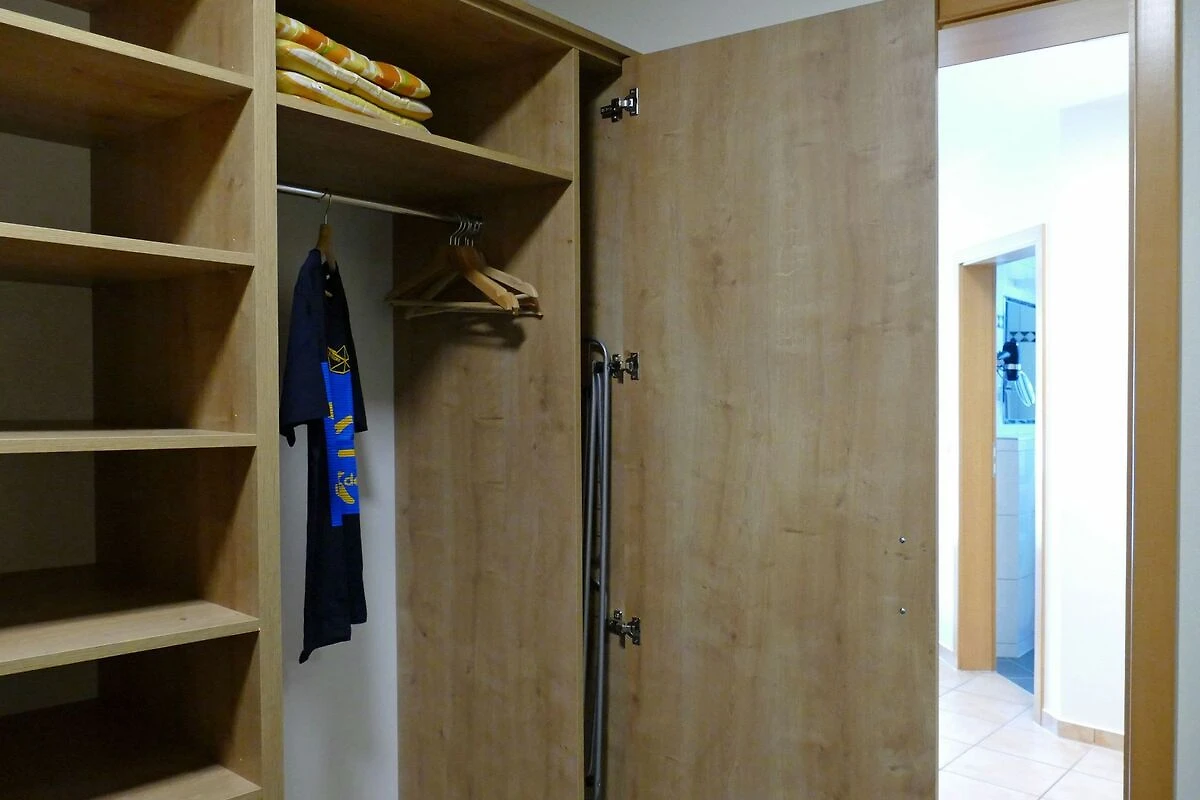 Der Flur bietet zusätzlichen Stauraum durch einen separaten Kleiderschrank und eine Garderobe. Auch für Ihr Gepäck gibt es eine Abstellmöglichkeit.