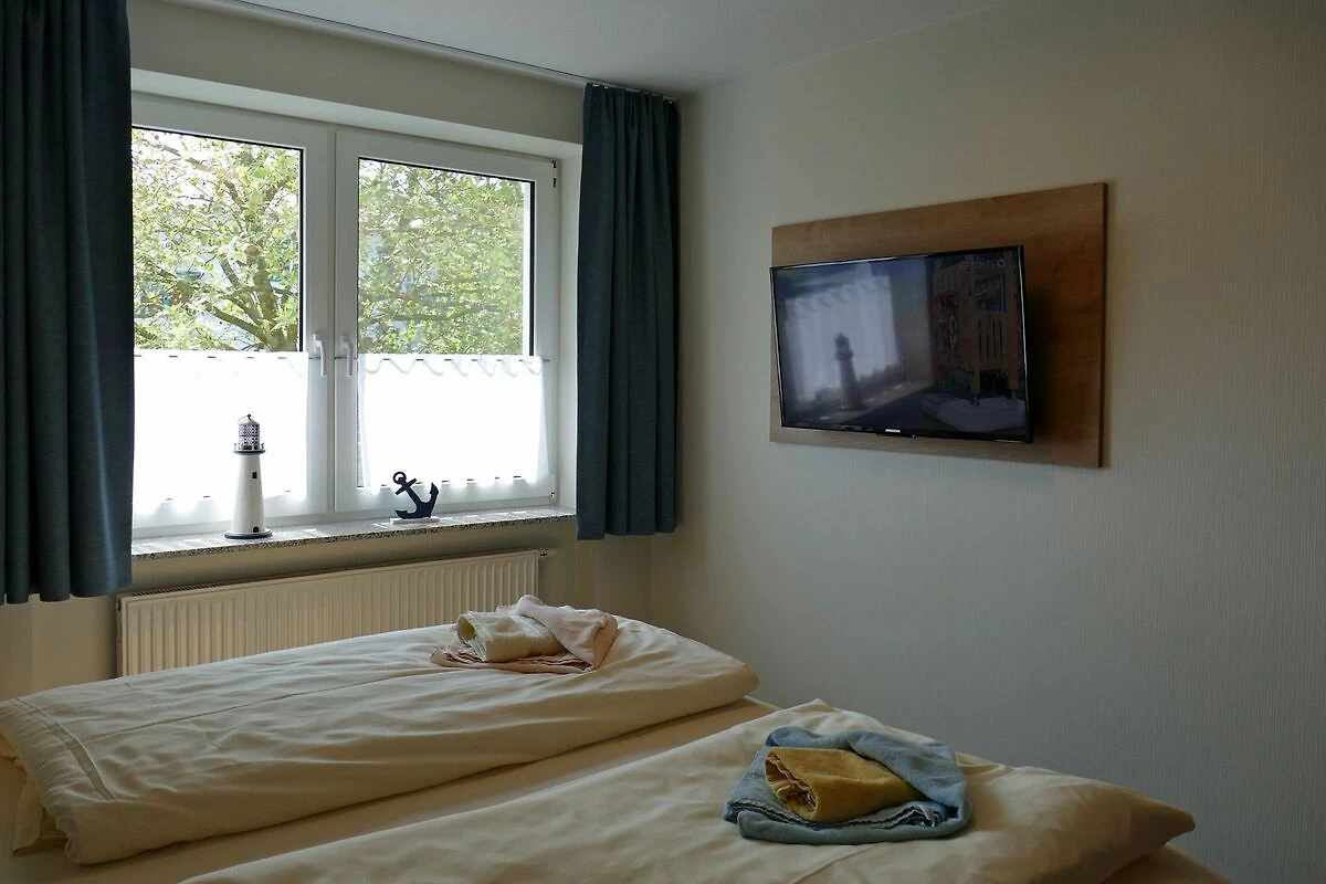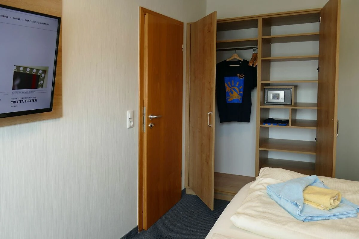 1 Schlafzimmer mit 2 vollwertigen Betten (90/200), Kleiderschrank und einem zusätzlichem Fernseher