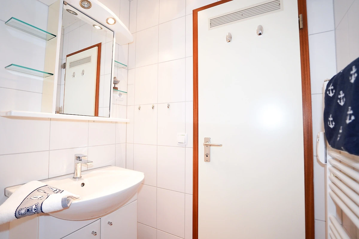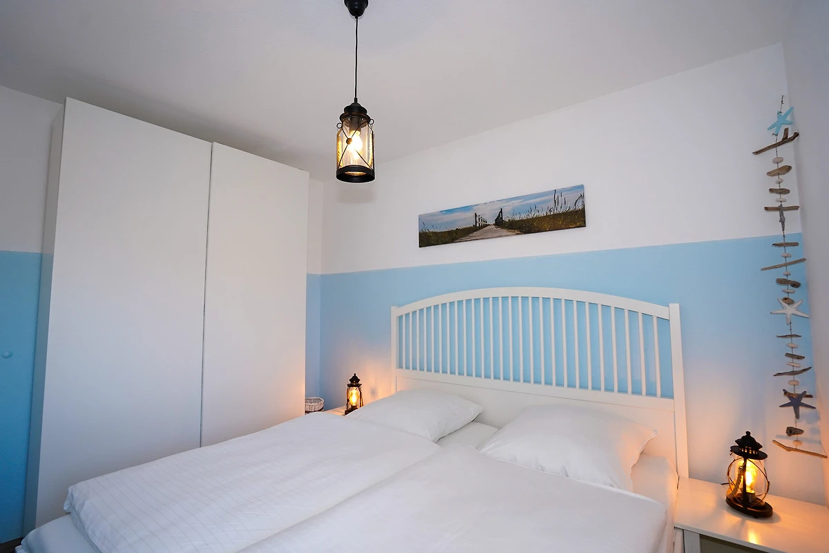 Im Schlafzimmer, welches mit einem bequemen Doppelbett ausgestattet ist, befindet sich durch einen grossen Kleiderschrank ausreichend Staumöglichkeit für Ihre Urlaubskleidung. Das geschmackvolle Badezimmer ist hell gefliest und mit allem ausgestattet, was Sie für die körperliche Hygiene benötigen.
