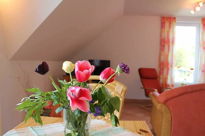 2 Ferienwohnungen (jede für 2-5 Personen) unter einem Dach. Beide Unterkünfte liebevoll mit Kiefernmöbeln eingerichtet, mit möbelierten Balkon und unverbauten Blick ins Grüne. Nur 7 Gehminuten sind es zum feinsandigen Ostseestrand! Der Parkplatz ist direkt am Haus, das Auto kann hier kostenfrei parken.