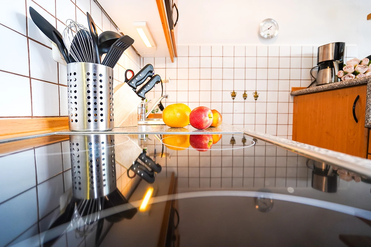 Die Küchenzeile ist mit Herd, Backofen, Mikrowelle, Geschirrspüler, Kühlschrank mit Gefrierfach sowie allen üblichen Küchengeräten sehr gut eingerichtet.