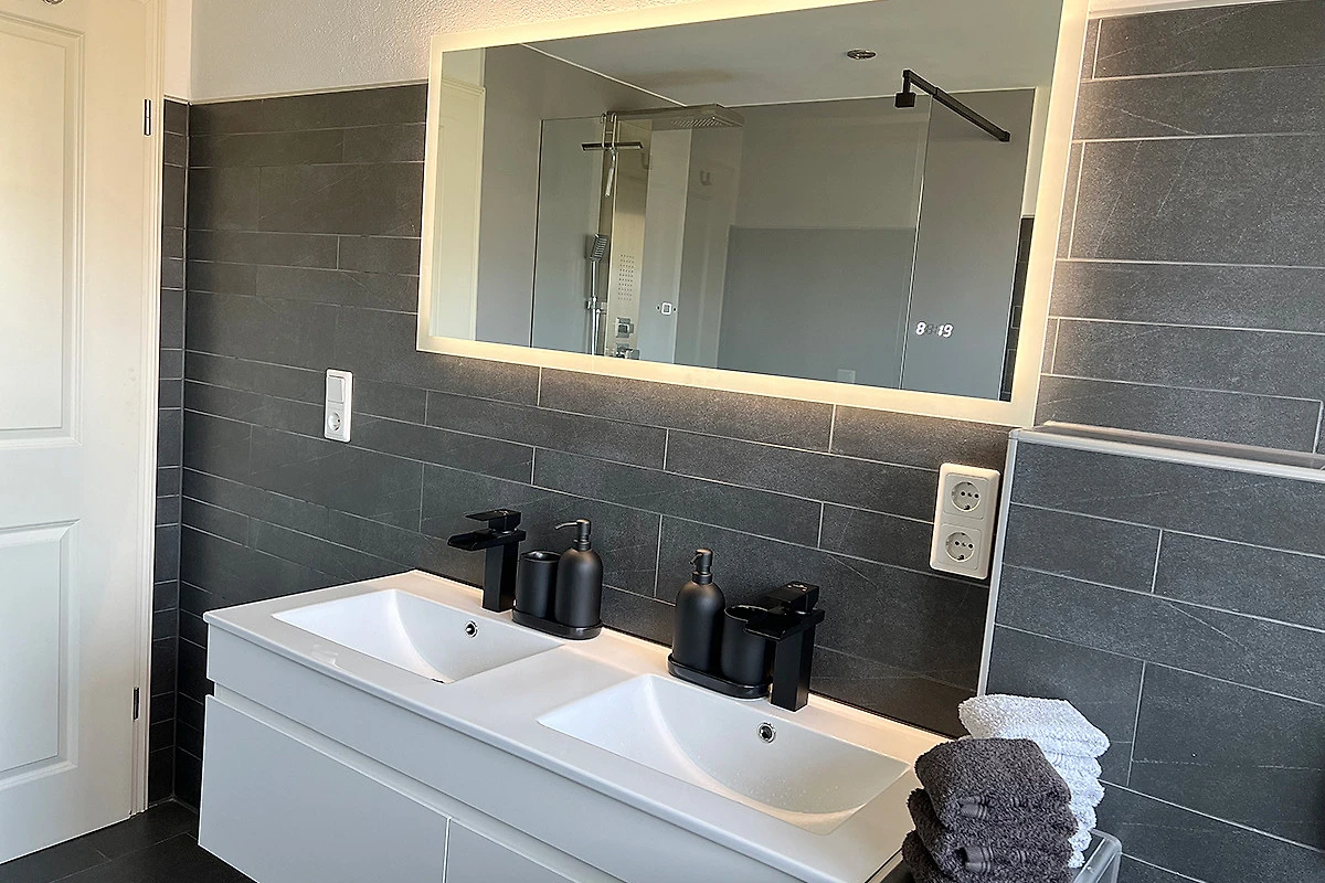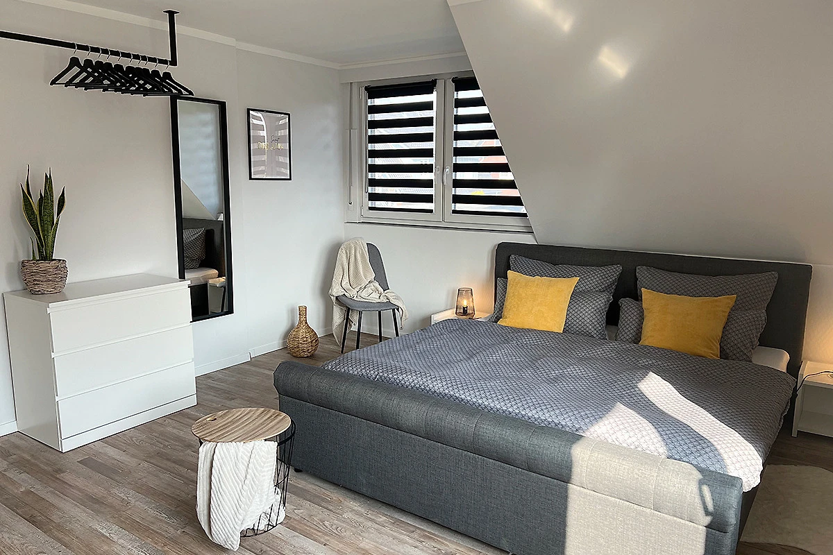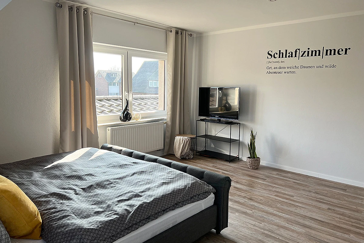 Unsere Ferienwohnung verfügt über ein grosses Wohnzimmer. Eine Küche mit grossem Essbereich, Bad mit WC und Dusche, drei getrennte Schlafzimmer (eins davon mit zusätzlichen Smart-TV), Hauswirtschaftsraum mit Waschmaschine und Gefriertruhe, eigenem Garten und einer gemütlichen Hütte zum sitzen. Ein Grill steht selbstverständlich zur Verfügung.