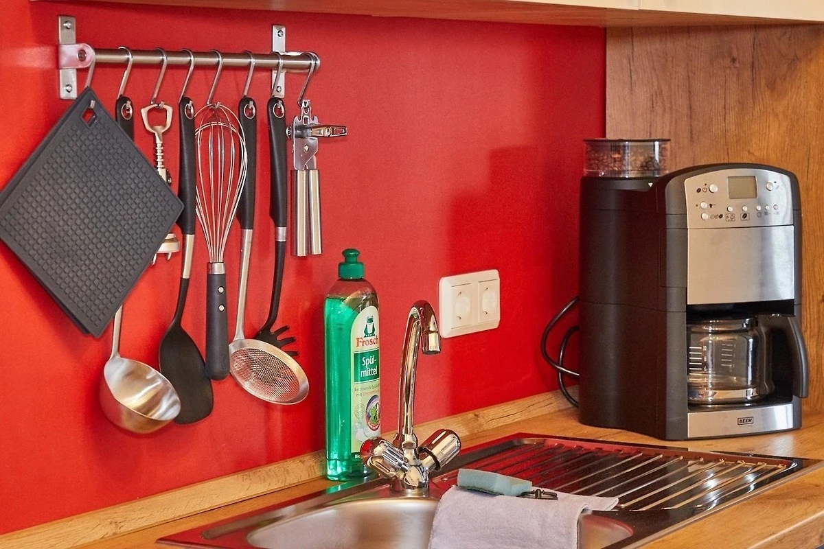 Diese Ferienwohnung bietet vielfältigen Komfort und eine durchdachte Ausstattung für erholsame Urlaubstage. Im grosszügigen Wohnschlafzimmer finden sich ein Sofa, Sessel und ein Esstisch, ideal für gemeinsame Mahlzeiten. Die offene Küche ist vollständig ausgestattet mit einem Elektro-/Gasherd, Geschirrspüler, Backofen, Mikrowelle, Kühlschrank und Gefriermöglichkeit, sowie weiteren Annehmlichkeiten wie einer Kaffeemaschine, einem Toaster und einem Wasserkocher. Für die kleinen Gäste steht ein Kinderhochstuhl bereit.