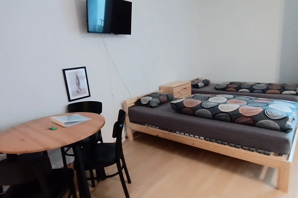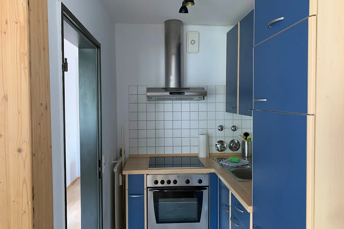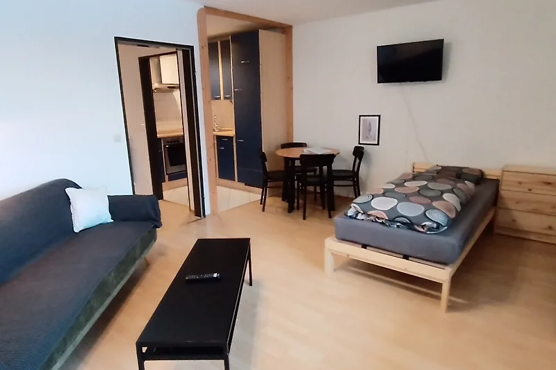 Die Wohnung befindet sich im 2. OG in einem Wohnblock am Ende einer Strasse - Sackgasse. Von hier aus erreichen Sie viele Orte bequem in wenigen Autominuten. Zur Messe und Flughafen Friedrichshafen sind es nur 10 Autominuten, sowie Markdorf, Meckenbeuren und Friedrichshafen. Vor dem Haus befindet sich ein grosser Parkplatz. Im Keller haben Sie die Möglichkeit Fahrräder unterzustellen. Die Wohnung verfügt über einen kombinierten Wohn-Schlafraum mit Balkon und ausgestattet mit zwei Einzelbetten, die zum Doppelbett gestellt werden können.