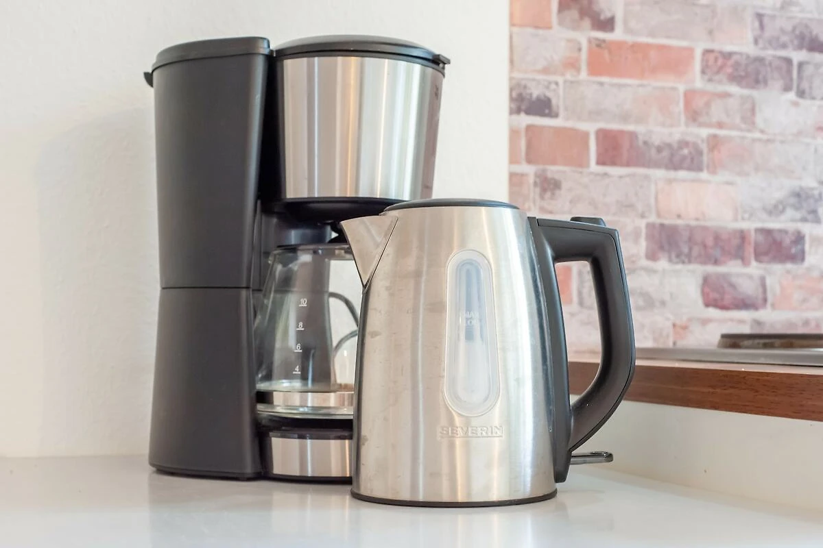 In der 1. Etage: (Eingang, Küche(Esstisch, Wasserkocher, Toaster, Kochherd(2 Kochplatten), Dunstabzugshaube, Kaffeemaschine(Filter), Kombi-Mikrowelle, Kühlschrank(+ Gefrierfach)), Schlafzimmer(Doppelbett), Badezimmer(Dusche, Waschbecken, Toilette, Föhn))