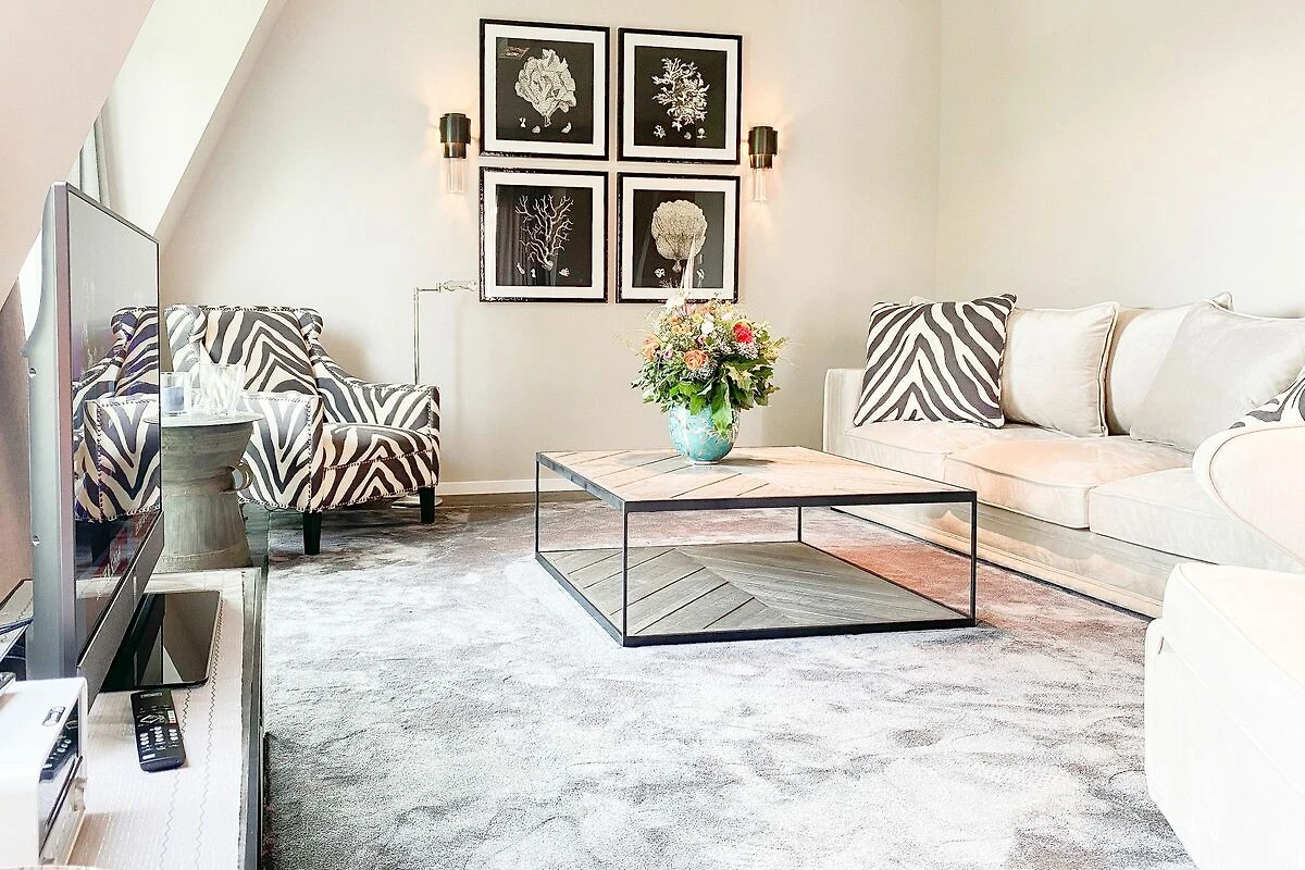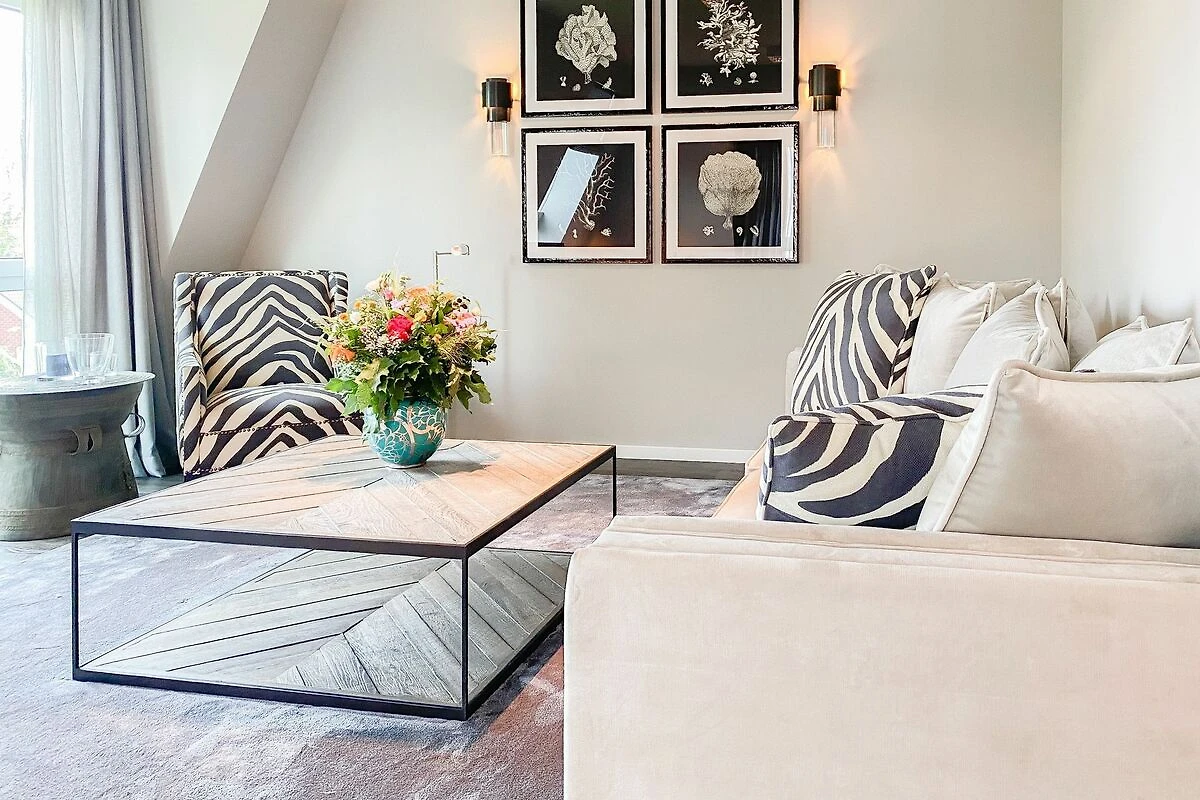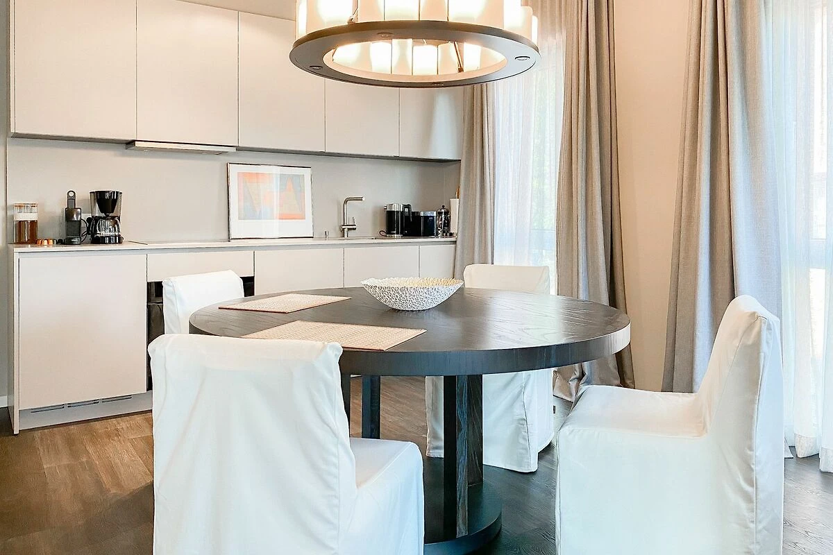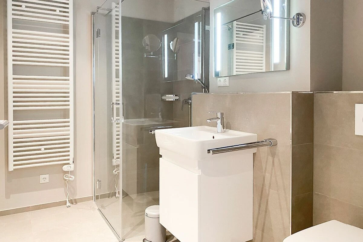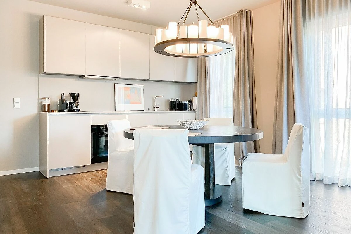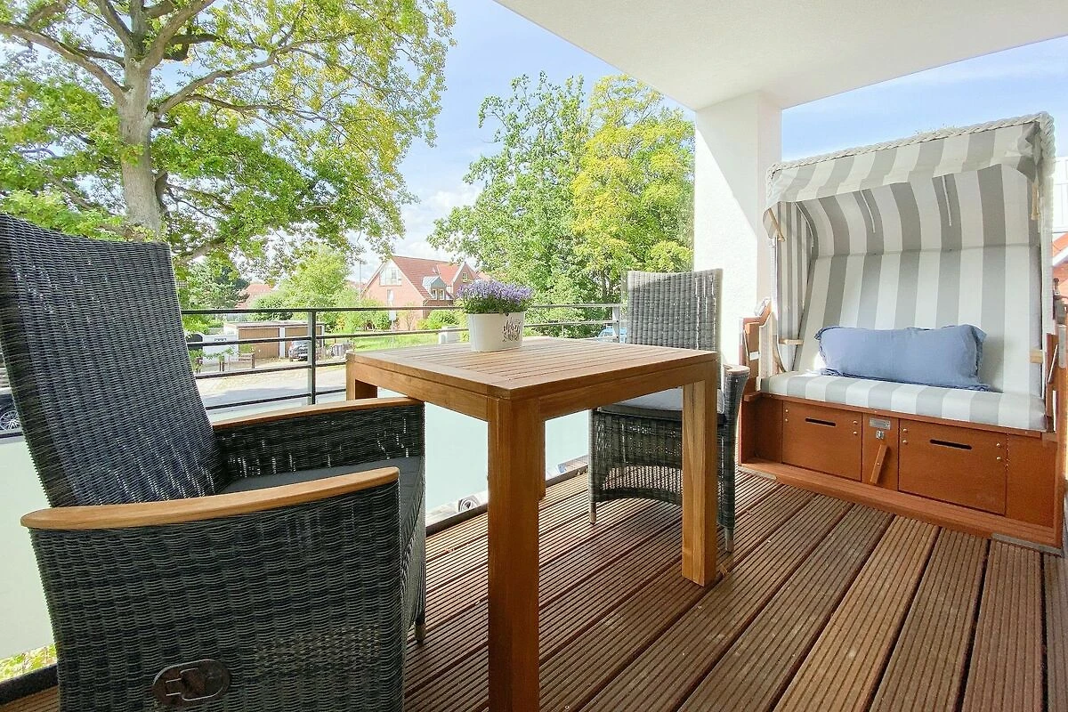 Die äusserst hochwertige Ausstattung und stilvolle Einrichtung dieser Wohnung bietet zeitgemässen Luxus auf fast 70 qm Wohnfläche für 2 Personen. Für Wellness Liebhaber wurde die Wohnung mit einer Infrarot Wärmekabine ausgestattet, besonders angenehm bei Verspannungen, zur Entschlackung oder einfach nur zur Entspannung. Mittelpunkt der Wohnung bildet der grosszügige Wohnbereich mit wunderschönem Blick auf die Ostsee, der mit einem gemütlichen Sofa, Lesesessel und TV ausgestattet ist. Der anschliessende Essbereich mit offener Designküche bietet ausreichend Platz für 4 Personen und ein Bioetanolkamin sorgt für eine gemütliche Atmosphäre. Das Schlafzimmer verfügt über ein Boxspringdoppelbett (180x200), Verdunkelungsvorhänge, TV und einen vorgelagerten Balkon in Südausrichtung, der mit Gartenmöbeln und einem Strandkorb ausgestattet ist. Im Flur befindet sich ein grosser Einbauschrank mit ausreichend Stauraum für Ihre Urlaubsgarderobe. Das Bad ist hochwertig und modern mit Walk In Dusche und integriertem Waschtrockner. Kostenloser Internetzugang ist über WLAN gegeben.