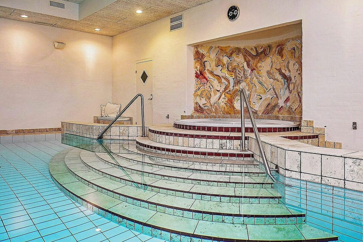 Küche(Kochherd(elektrisch), Kaffeemaschine, Spülmaschine, Tiefkühlschrank(1-59L), Kühl-/Gefrierkombination), Wohn-/Schlafzimmer(TV(Deutsch Fernsehsender, dänische Fernsehsender, norwegische Fernsehsender, schwedische Fernsehsender), Kaminofen, DVD-Spieler, CD-Spieler, Stereoanlage), Schlafzimmer(Doppelbett), Schlafzimmer(Doppelbett), Schlafzimmer(Doppelbett), Badezimmer(Trockner, Waschbecken, Dusche, Toilette, Waschmaschine), Badezimmer(Waschbecken, Toilette), Whirlwanne(Gemeinschaftliche Nutzung mit anderen Gästen, im Innenbereich, erwärmt, 8 Personen), Sauna(Gemeinschaftliche Nutzung mit anderen Gästen, im Innenbereich, 8 Personen), Heizung(Zentral), Gartenmöbel, Liegen, Pool(Gemeinschaftliche Nutzung mit anderen Gästen, im Innenbereich)
