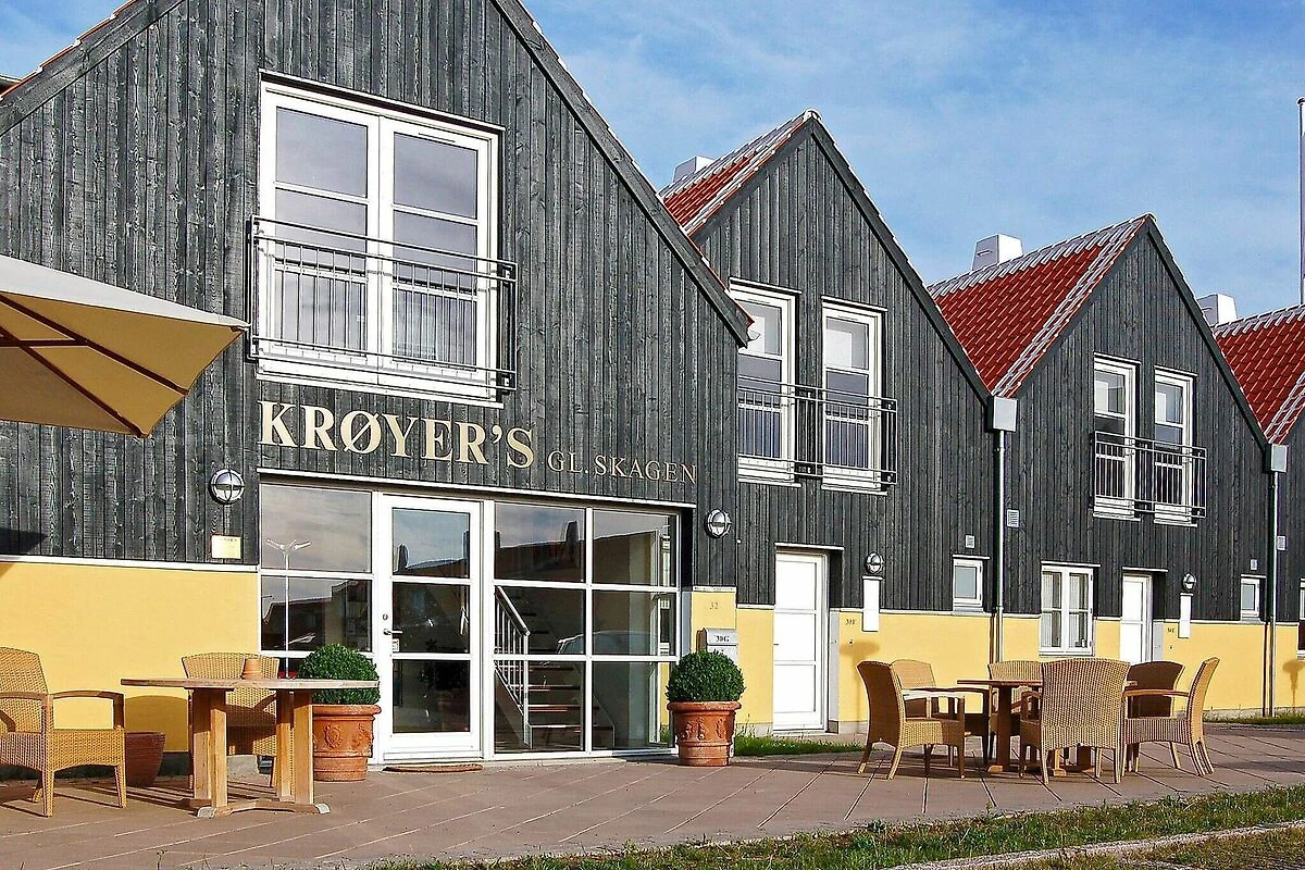 Schöne und geräumige Ferienwohnung im Feriecenter Krøyer's Gl. Skagen mit Zugang zu einem gemeinsamen Whirlpool, einer Sauna und einem Innenpool. Dieses geschmackvolle Ferienhaus mit Interieur von Philippe Starck und B&O ist ideal für einen Familienurlaub oder drei erwachsene Paare. Die geschmackvolle Inneneinrichtung der Ferienhäuser umfasst eine Küche von Gaggenau und Möbel von Casa Marc Italy. In Krøyers exklusivem Ferienhaus erleben Sie die perfekte Atmosphäre von Gl. Skagen. In den charmanten gelben Skagen-Häusern wohnen Sie nur wenige hundert Meter von Meer, Strand und Dünen entfernt und haben alles in Reichweite: Restaurants, Kunstmuseen, Galerien und fantastische Einkaufsmöglichkeiten. Die Wohnung befindet sich im Erdgeschoss und verfügt über eine große Wohnküche, das Herzstück des Hauses, mit allen modernen Annehmlichkeiten, einem schönen Essbereich und einem gemütlichen Wohnzimmer mit schönem Kamin und bequemen Loungemöbeln, wo Sie Brettspiele spielen oder einen guten Film im Fernsehen ansehen können. Von der Wohnküche aus haben Sie direkten Zugang zur Terrasse. Das Badezimmer verfügt über Dusche, WC und Waschbecken. Im ersten Stock befinden sich der Schlafbereich mit Gäste-WC und drei schöne, helle Schlafzimmer, alle mit Doppelbetten (zwei 90 x 200 cm große Betten, die zu einem Doppelbett zusammengeschoben werden können). Der Kamin im Wohnzimmer sorgt bei Einbruch der Dunkelheit für die richtige Atmosphäre. Verwöhnen Sie Ihre bessere Hälfte mit einem Bad im Swimmingpool und Whirlpool. Krøyers Wellnessgebäude mit Whirlpool, Sauna und Innenpool liegt nur wenige Meter von der Haustür entfernt. Das Licht an der Spitze Dänemarks ist einfach fantastisch. Skagens abwechslungsreiche Natur ist geprägt vom Meer und kilometerlangen weißen Stränden. Machen Sie einen Ausflug zum nördlichsten Punkt Dänemarks, Grenen, wo die beiden Meere Skagerrak und Kattegat aufeinandertreffen, oder besuchen Sie eine der vielen anderen Attraktionen in der Umgebung. Flagbakken ist ein Paradies für Vogelbeobachter. Verbringen Sie Ihren Sommerurlaub in einem der traditionellsten und charmantesten Feriendörfer Dänemarks oder genießen Sie im Winter die Natur bei einer Wanderung durch die schneebedeckten Dünen. Nicht an Jugendgruppen vermietbar.Kurz vor Ihrem Ankunftsdatum kann eine rückzahlbare Kaution erhoben werden. Die Kaution stellt sicher, dass Ihr Aufenthalt reibungslos verläuft, und deckt eventuelle Zusatzleistungen oder Verbrauchskosten ab.Diese Kaution deckt den Verbrauch von Nebenkosten während Ihres Aufenthalts sowie zusätzliche in Anspruch genommene Leistungen ab.Der endgültige Betrag wird anhand der tatsächlichen Zählerstände und Nutzung zusätzlicher Services angepasst. Ein etwaiger Restbetrag wird Ihnen innerhalb von 21 Tagen nach dem Check-out zurückerstattet.Die Kaution dient lediglich als Vorauszahlung für Leistungen, die Sie ohnehin bezahlen würden, und ermöglicht einen reibungslosen Ablauf Ihres Aufenthalts und Check-outs.