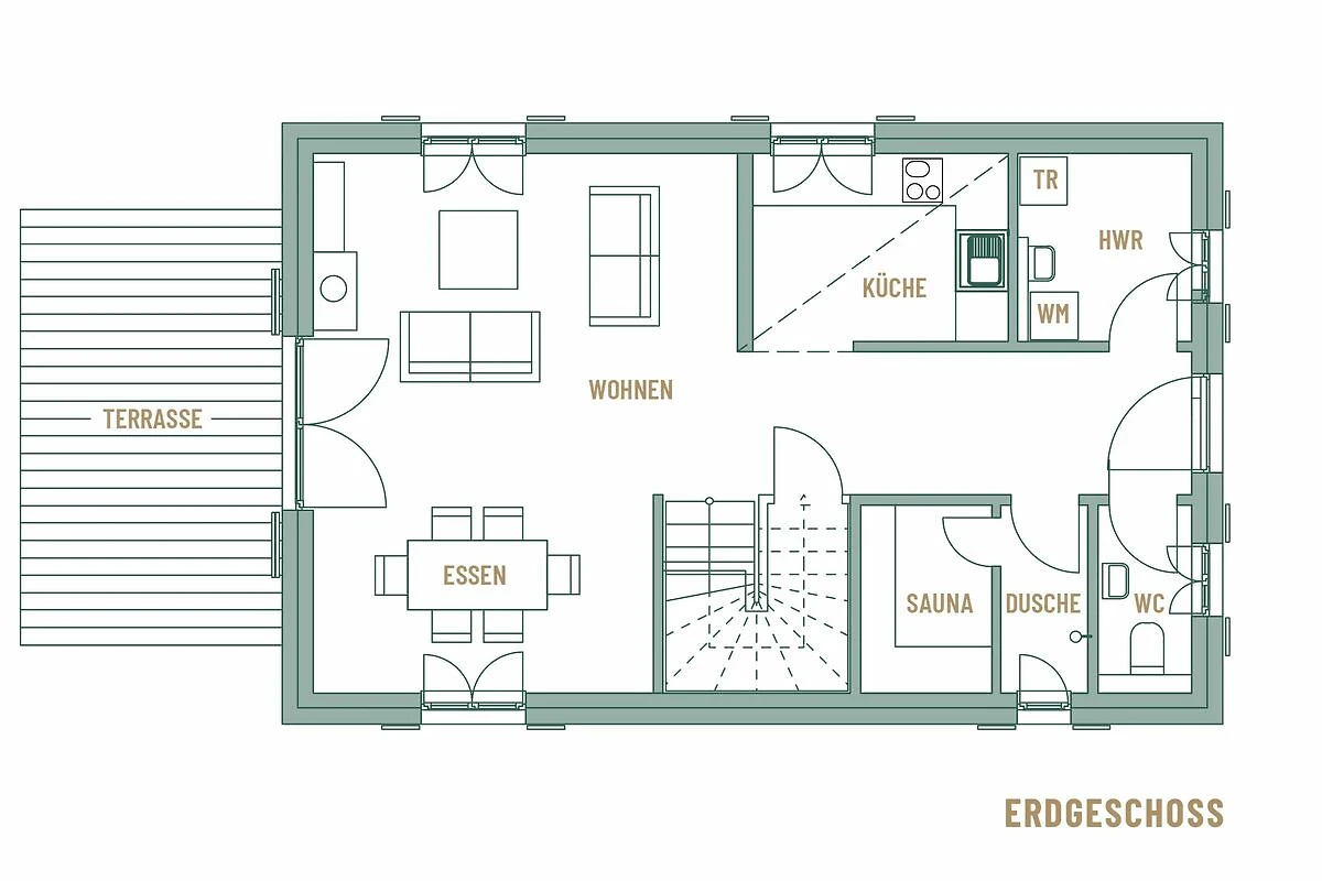 Freuen Sie sich in dieser luxuriösen Villa auf ein Frühstück auf der privaten Terrasse, einen gemütlichen Kaminabend und einen entspannten Saunabesuch in der hauseigenen Sauna mit Duschbad. Ein großzügiger Wohnraum kombiniert das Wohnzimmer mit Kamin, LCD-Flachbildschirm, DVD-Player und Stereo-Anlage mit dem Essbereich und einer Qualitätsküche. Diese ist voll eingerichtet und bietet einen Geschirrspüler, einen Backofen, ein Kochfeld, eine Kaffeemaschine, einen Wasserkocher und einen Toaster. Drei Schlafzimmer, eines mit großem 180cm Doppelbett, die anderen mit je einem 160cm Doppelbett, verfügen zusätzlich über genügend Verstaumöglichkeiten. Das Vollbad überzeugt mit einer Badewanne, einer geräumigen Dusche, einem Waschbecken, einem WC und einem großen Spiegel. Zusätzlich gibt es ein Gäste-WC und eine Waschmaschine sowie einen Trockner.