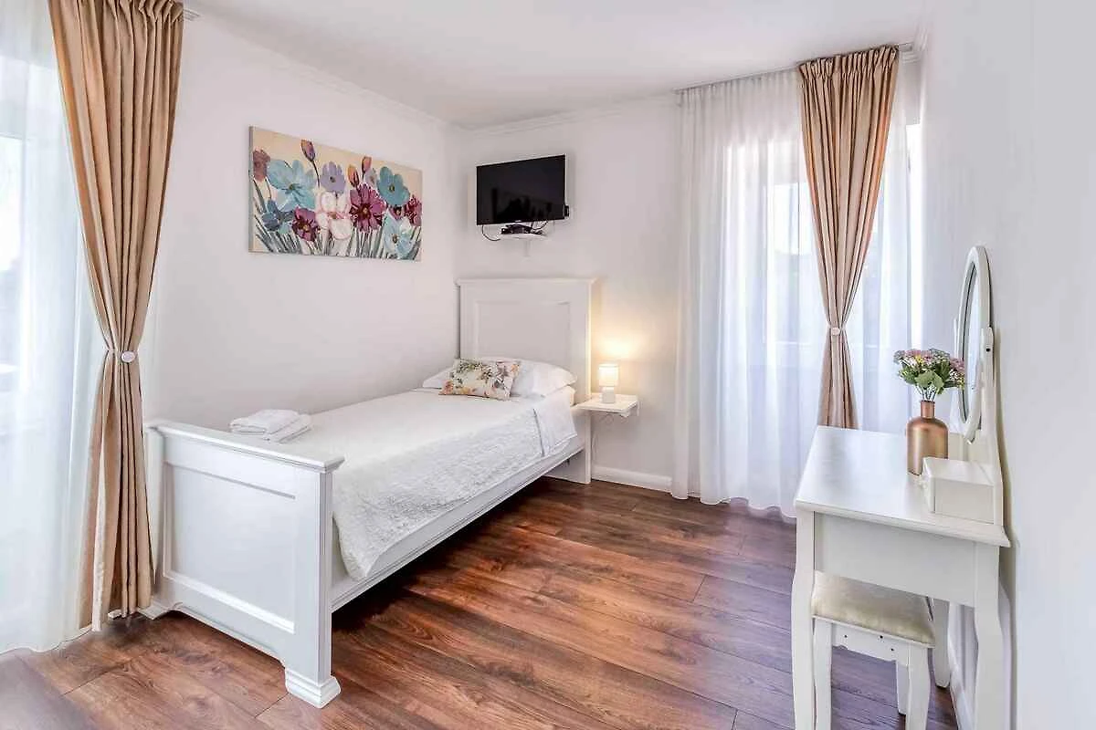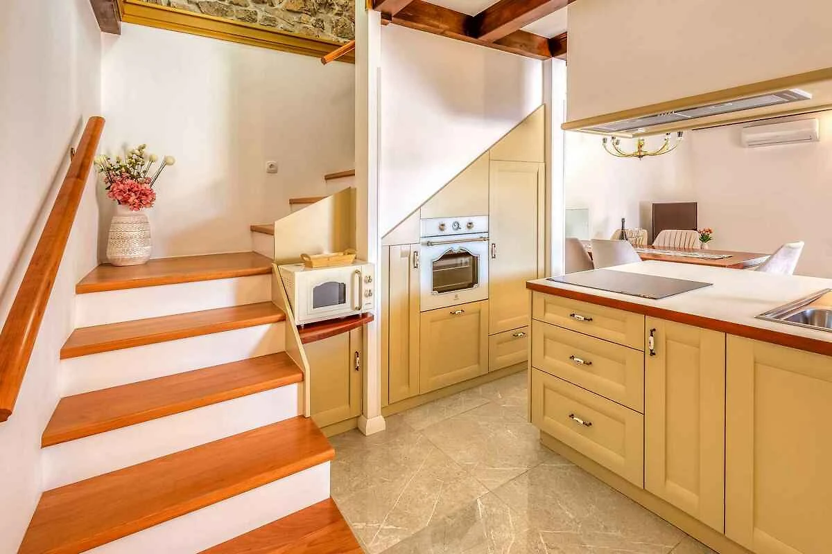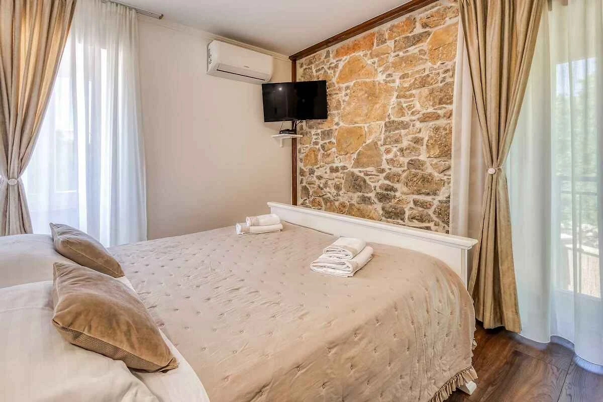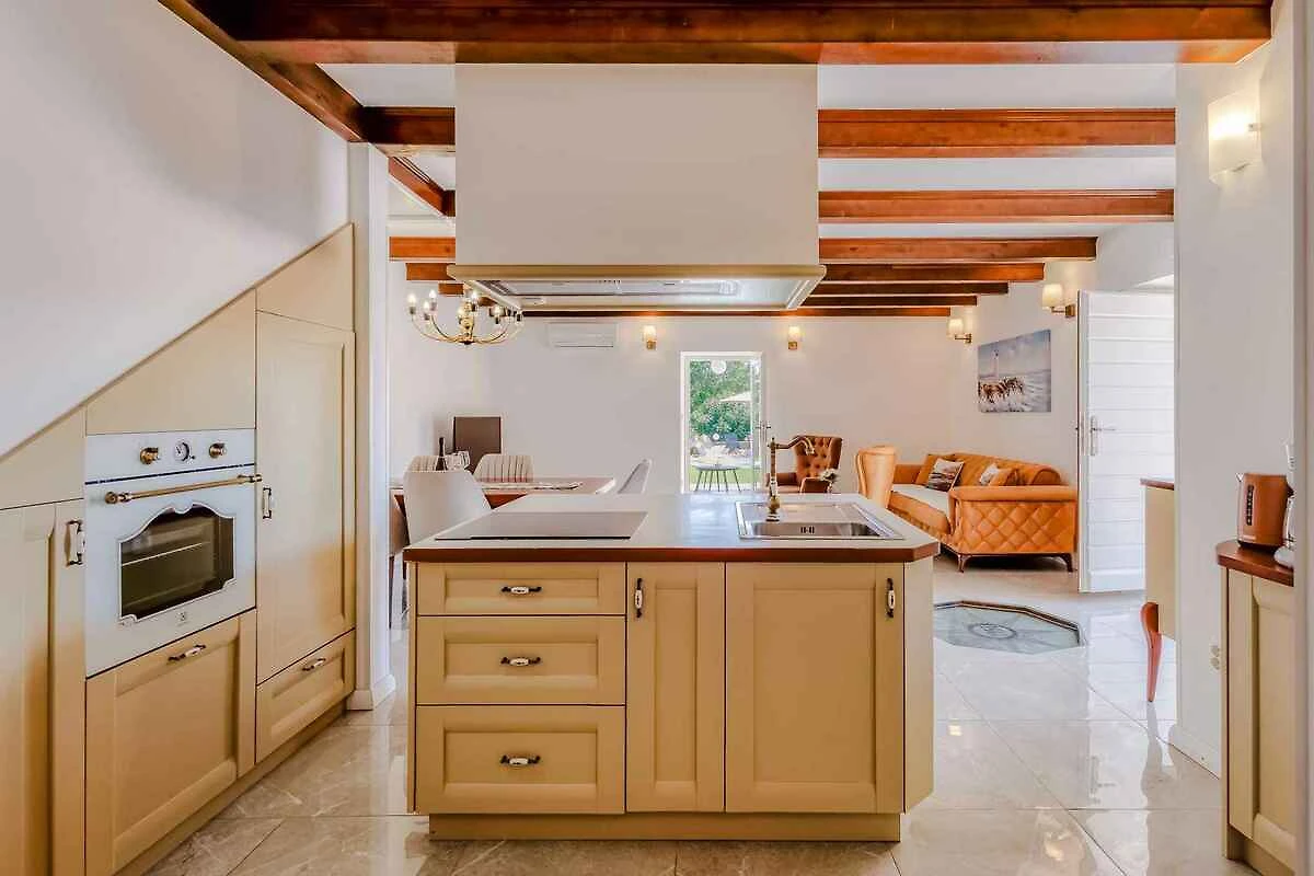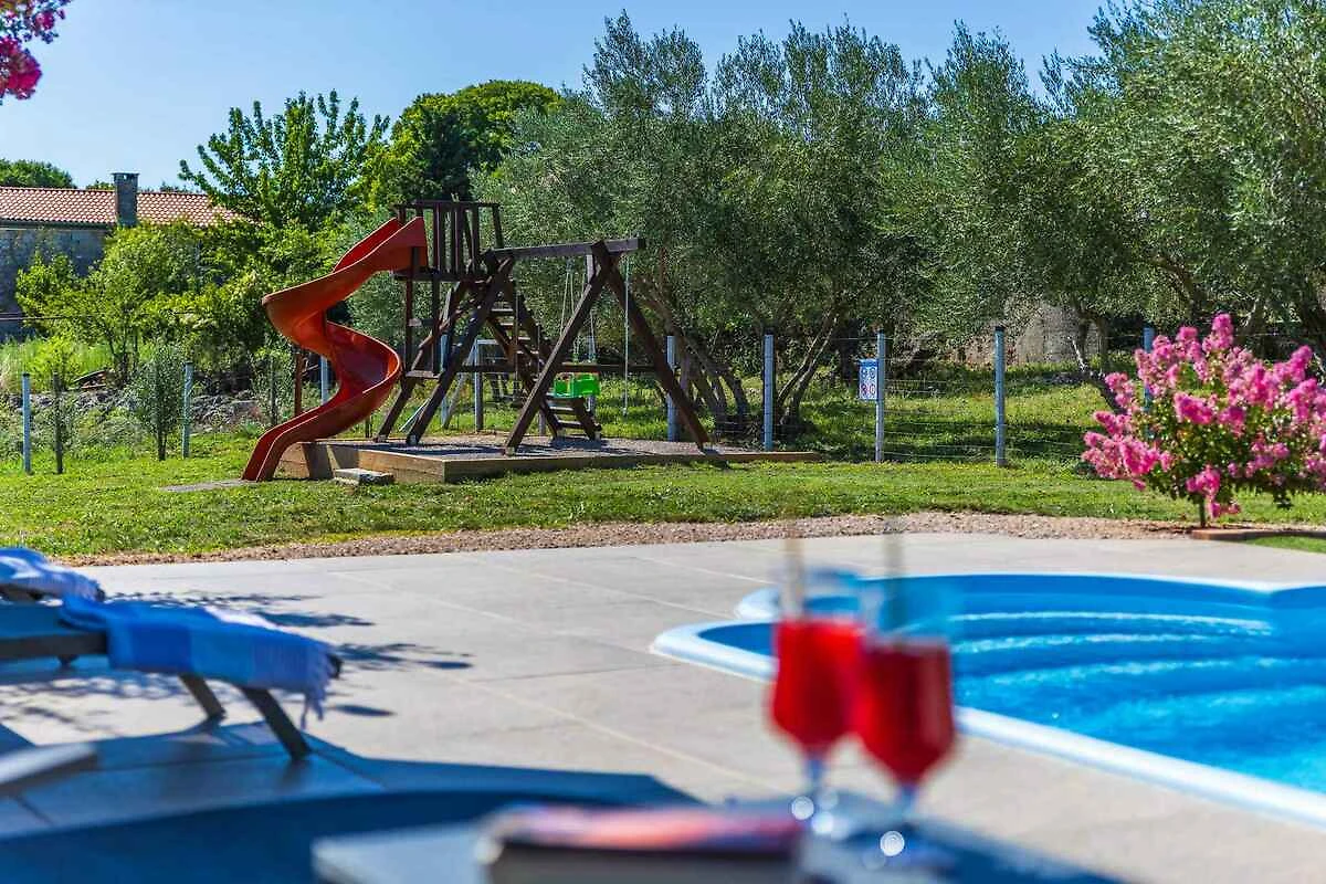 Bajčići. Die Villa befindet sich auf einem Bauernhof, auf einem 600 qm grossen, geschlossenen Gartengrundstück, von einem Zaun und einer Hecke begrenzt. Der Vermieter wohnt nicht im Haus oder auf dem Grundstück. Die Zufahrt erfolgt über eine Nebenstrasse (asphaltiert). Parkplatz (für 3 Pkws) auf dem Grundstück.