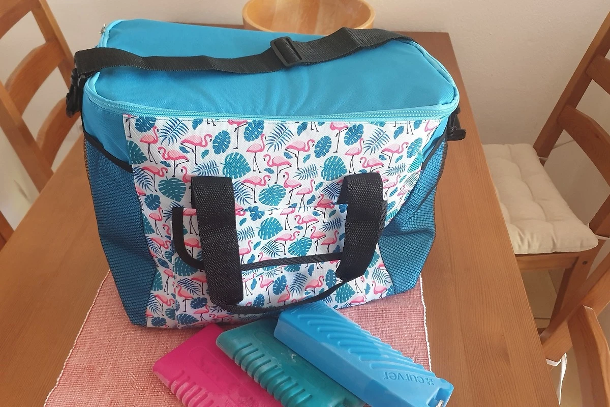 Es gibt eine Kühltasche (inkl. Kühlakkus) um Getränke etc. zum Strand mitzunehmen.