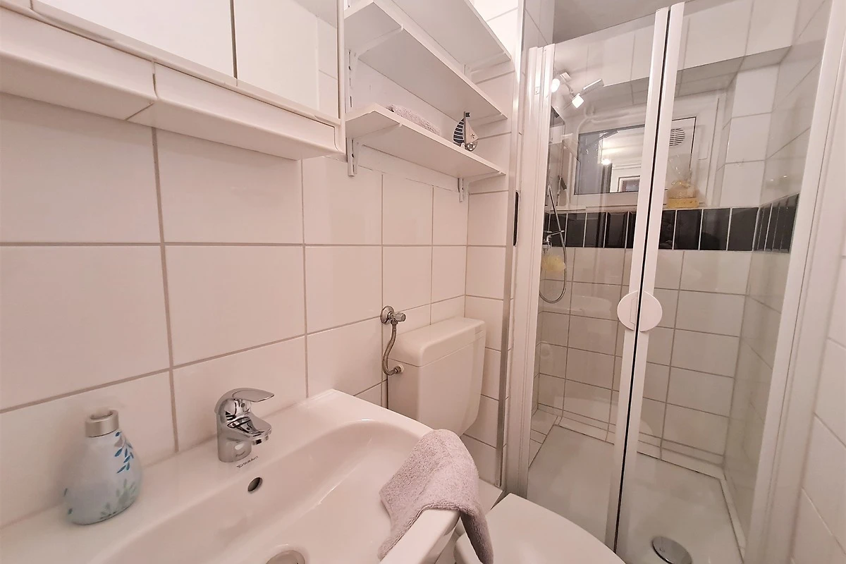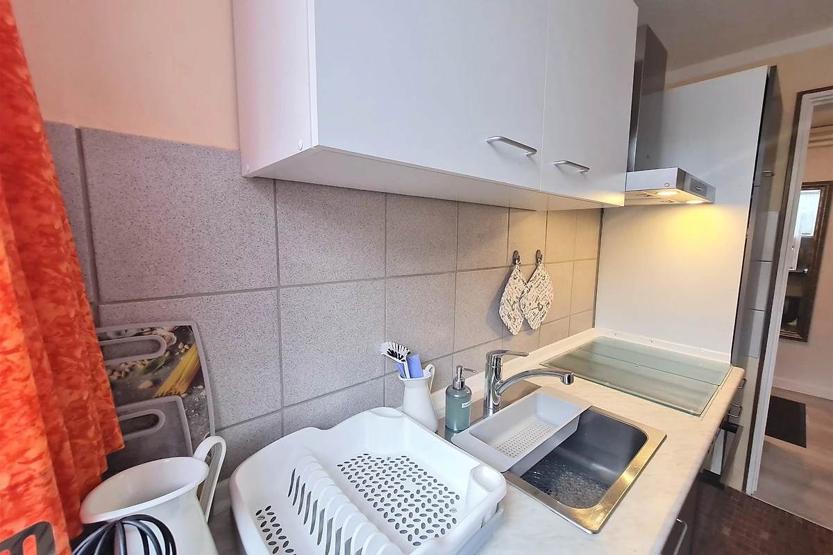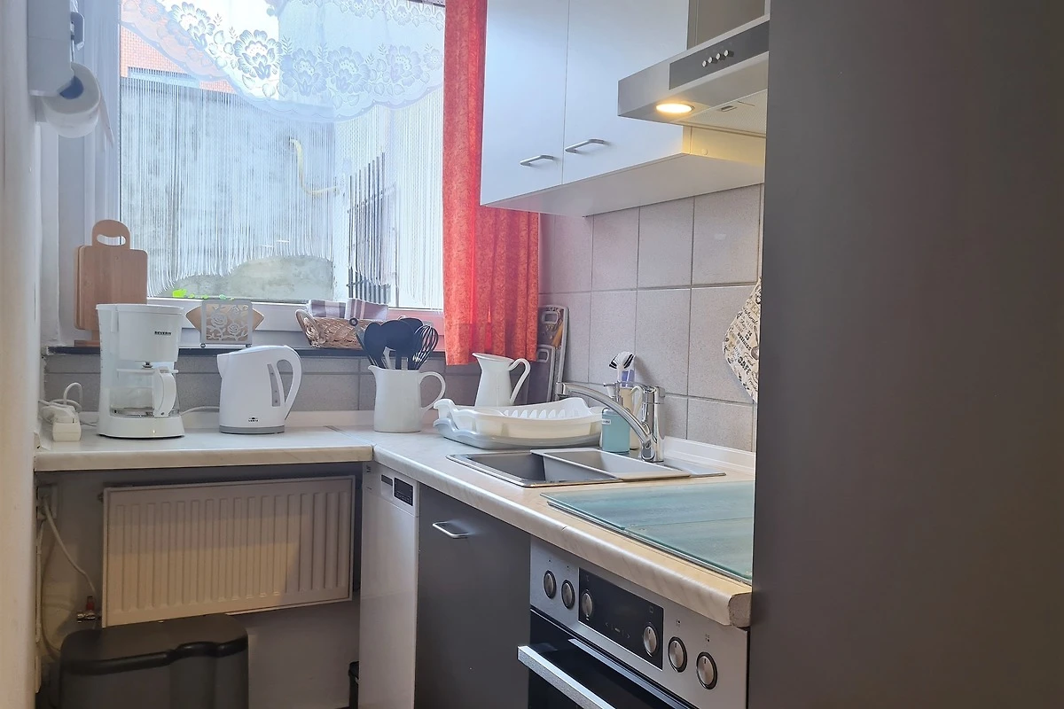 Die Ferienwohnung befindet sich im kühlen Souterrain eines Einfamilienhauses in einer ruhigen Nebenstraße, Einkaufsmöglichkeiten sind gleich um die Ecke. Alle Zimmer sind praktisch und funktional möbliert, es gibt eine kleine super ausgestattete Küche und ein kleines Bad, es ist alles vorhanden, was man braucht.
