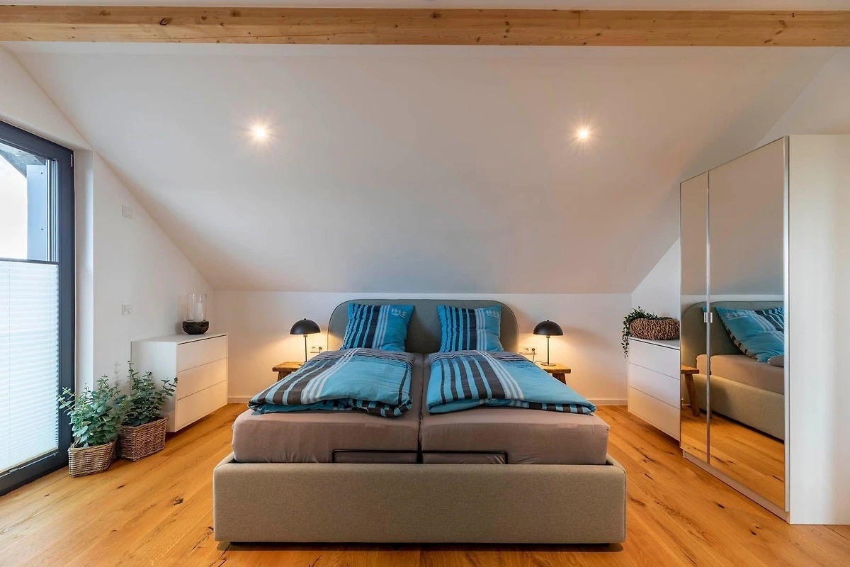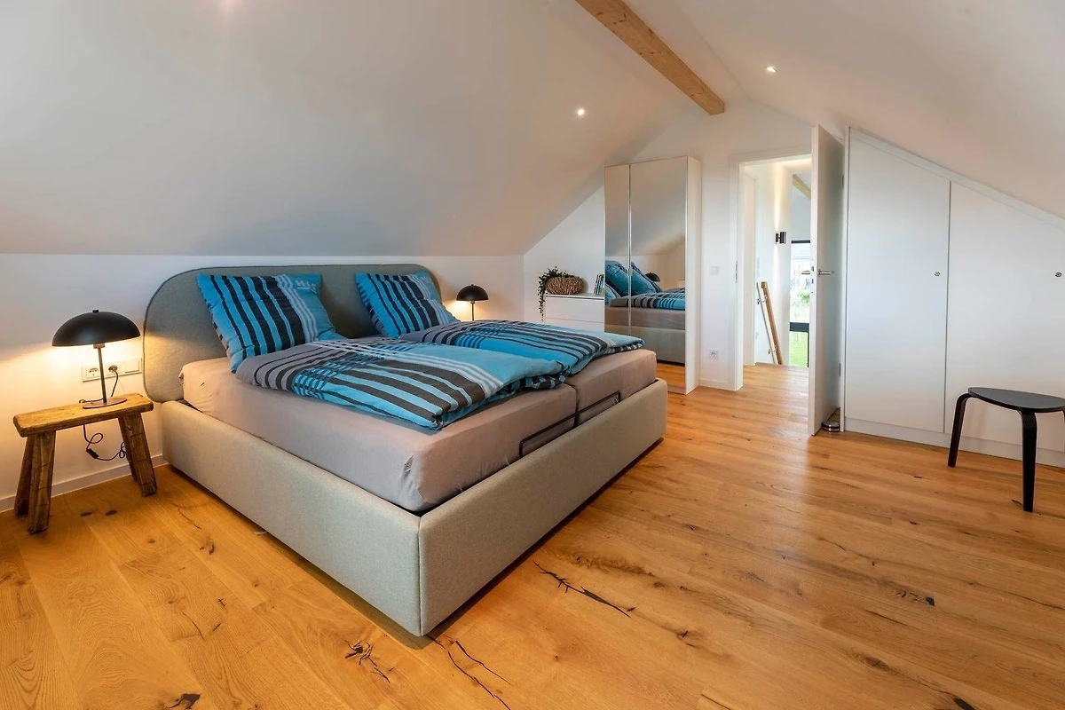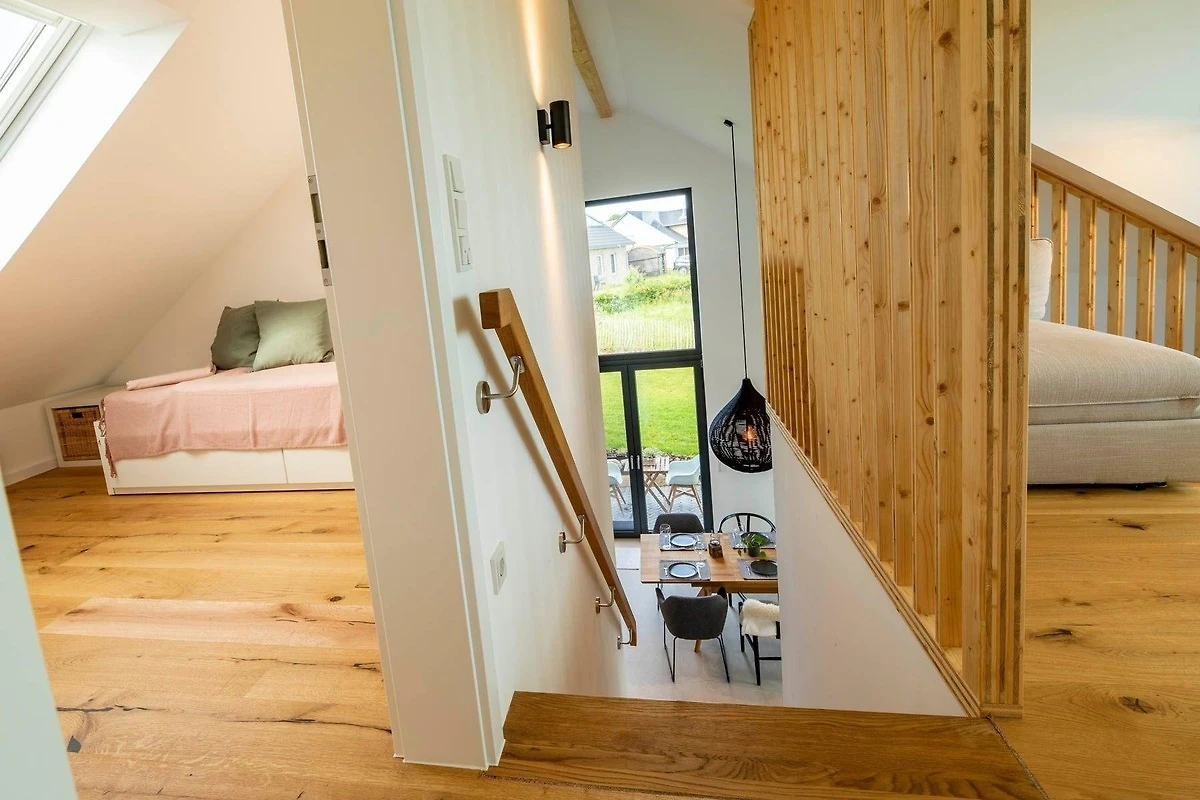 Die Ferienwohnung bietet zahlreiche Highlights für erholsame Tage. Ein freistehender Rückzugsort mit eigenem Parkplatz und einer E-Ladestation für Elektroautos sorgt für Komfort. Der Aussenbereich wird durch einen Strandkorb bereichert, ideal für entspannte Stunden. Zudem lädt eine Sauna zur wohlverdienten Entspannung ein. Privatheit und Gemütlichkeit stehen hier an erster Stelle.