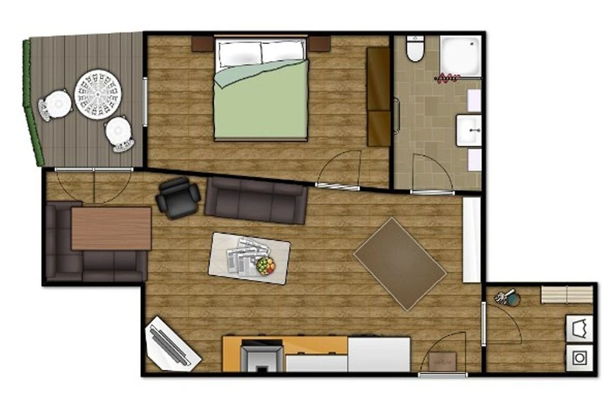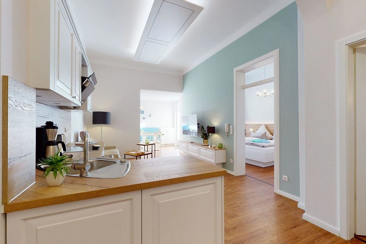 Die erstklassig ausgestattete offene Wohnküche bietet alles für ein gemeinsames Frühstück, Mittag- und Abendessen zu zweit. Das Schlafzimmer mit Doppelbett verfügt über einen zweiten TV. Geniessen Sie Ruhe und Unbeschwertheit im stilvollen Bad mit ebenerdige Dusche. Abstellraum mit Trockner und Waschmaschine.