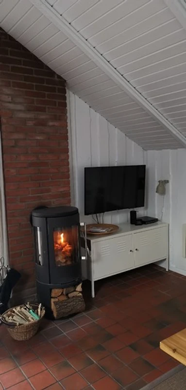 Im grosszügigen Wohnzimmer erwartet Sie eine gemütliche Sitzecke mit einem Kaminofen, der an kühlen Abenden für wohlige Wärme sorgt und eine ganz besondere Atmosphäre schafft. Der Flachbildfernseher und ein DVD-Player bieten Ihnen Unterhaltung, falls das Wetter mal nicht zum Verweilen draussen einlädt. Vom Wohnzimmer aus haben Sie direkten Zugang zur grossen Terrasse, die mit Gartenmöbeln ausgestattet ist und so zu langen Stunden im Freien einlädt. Geniessen Sie die frische Luft und den Blick auf den Garten, während Sie in einem Strandkorb entspannen oder den Abend mit einem Grillabend ausklingen lassen. Ein Grill steht Ihnen zur Verfügung, um kulinarische Genüsse unter freiem Himmel zu erleben.