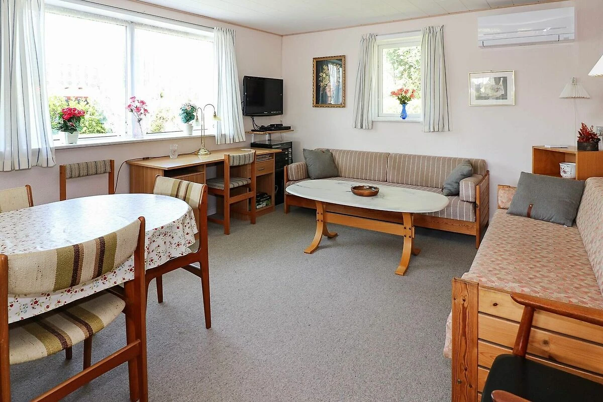 Ferienhaus nur wenige Gehminuten vom Strand und dem kleinen Ort Øster Hurup entfernt. Geräumiges Wohnzimmer mit Essbereich und Zugang zu einer überdachten Terrasse und Patio. Küche mit Zugang zum Grundstück mit Schaukel. Es gibt ein Schlafzimmer mit Doppelbett und ein zweites Schlafzimmer mit zwei Einzelbetten sowie ein Badezimmer mit Dusche. Keine Vermietung an Jugendgruppen erwünscht!