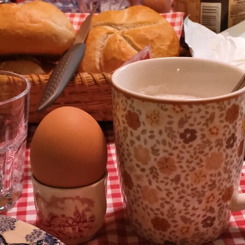 Lass die Morgensonne zur Tür herein und genieße in unserem großen Garten einen guten Kaffee.