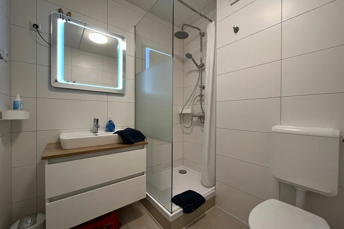 Die Wohnung verfügt über Vollausstattung incl. W-Lan und ist komplett eingerichtet. Bettwäsche-Set (10,- €) und Set Handtücher (10,- €) werden auf Wunsch zur Verfügung gestellt. Ein PKW-Stellplatz gehört zur Wohnung. Abstellmöglichkeiten für Fahrräder, Kinderwagen etc. stehen im Treppenhaus zur Verfügung.