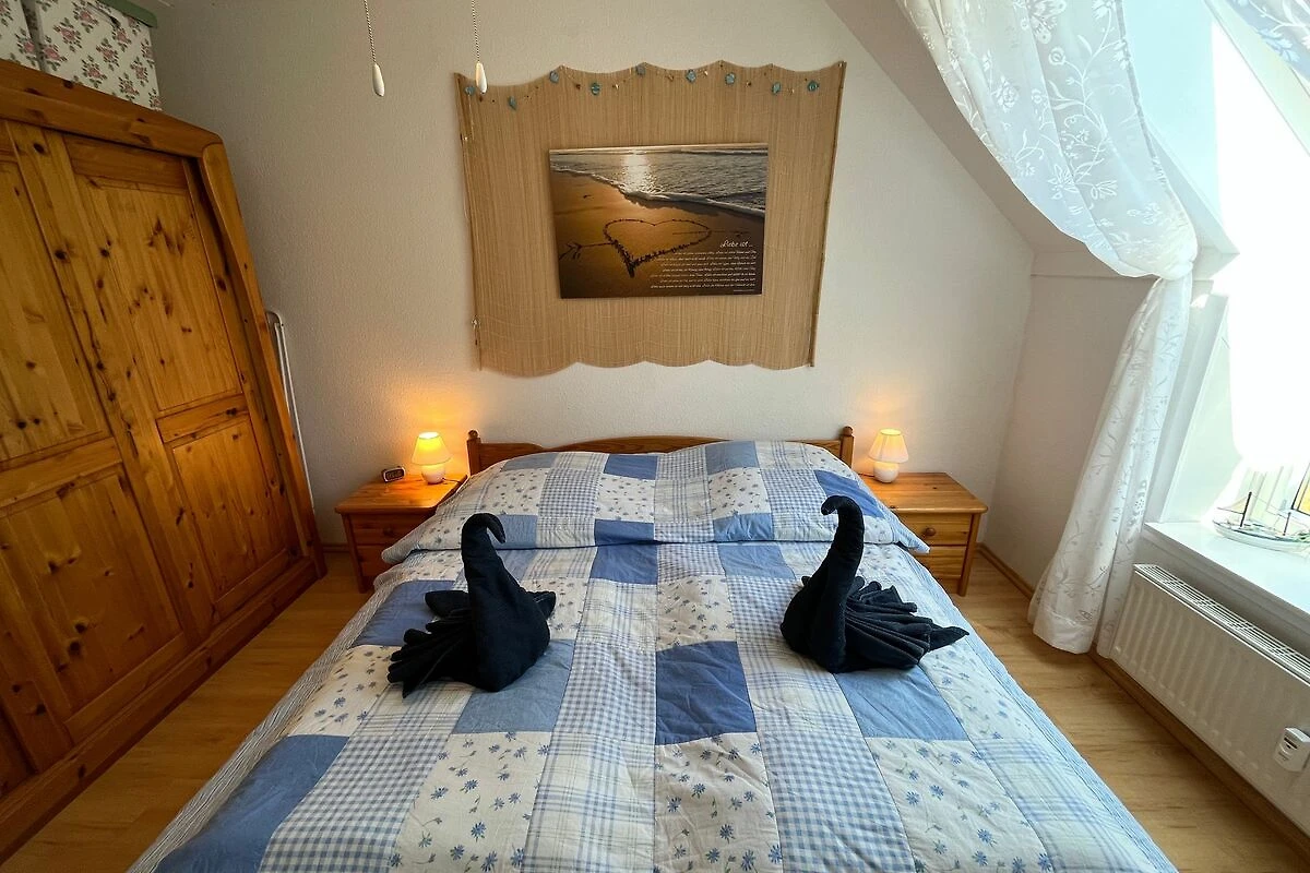 Es erwartet Sie eine gemütliche Ferienwohnung mit Schlafzimmer, Kinderzimmer, Bad und Wohnbereich auf 55 qm im 1. OG.