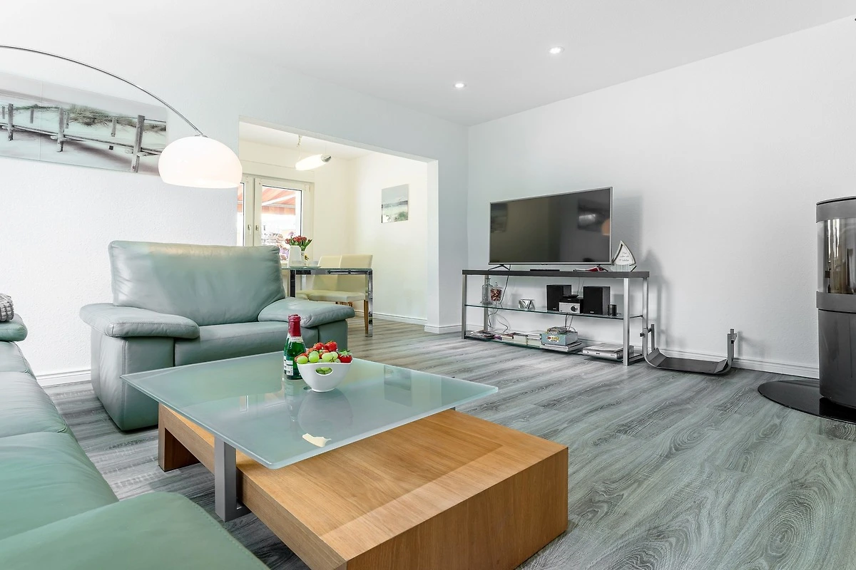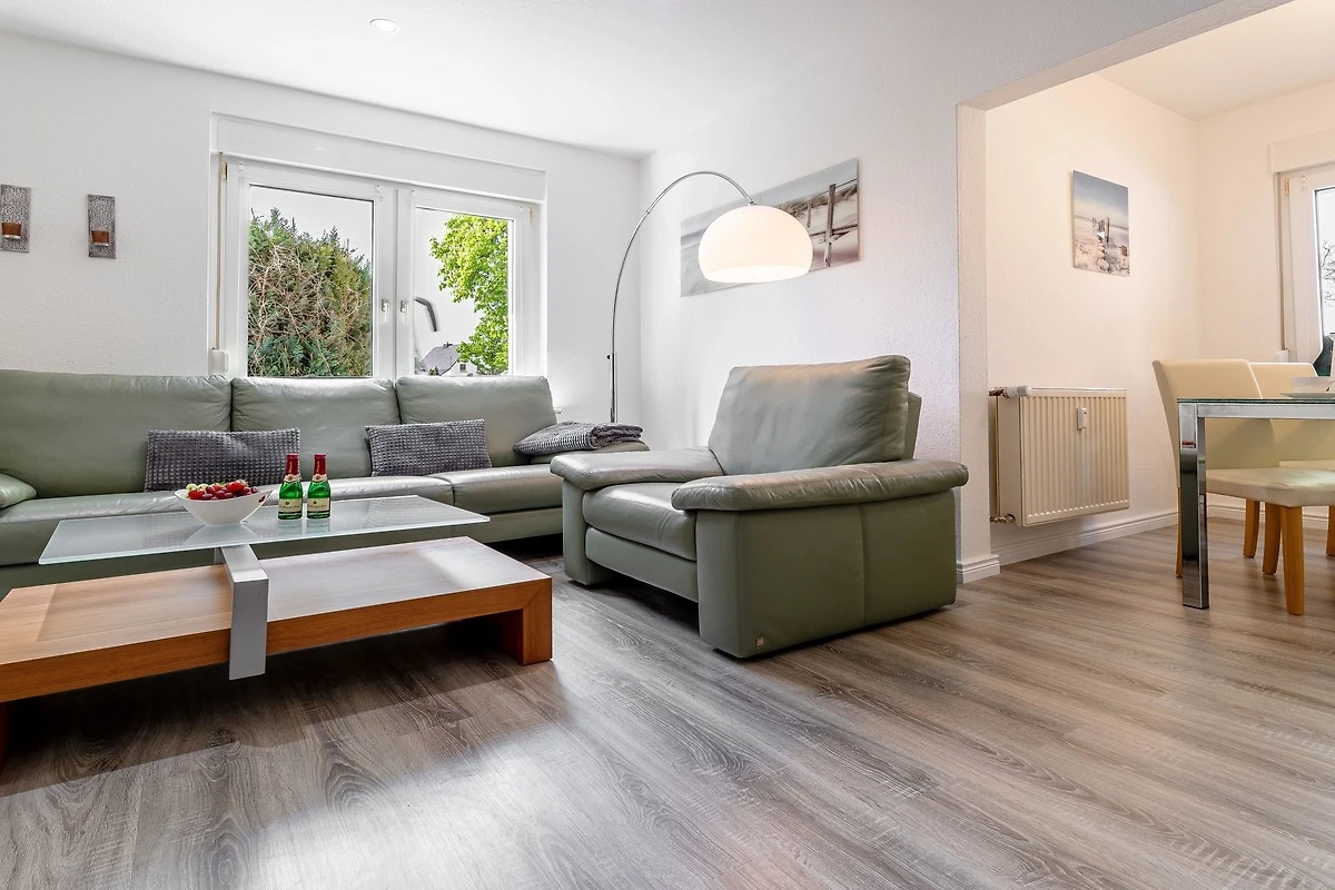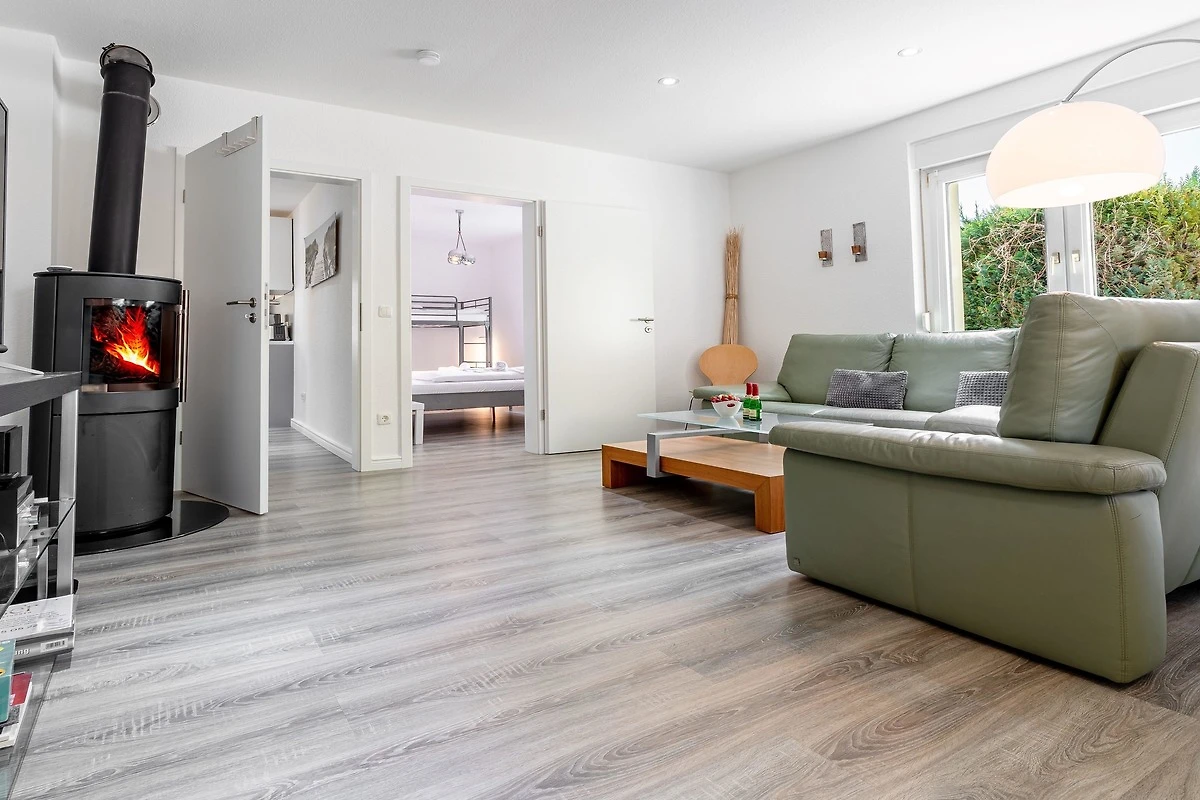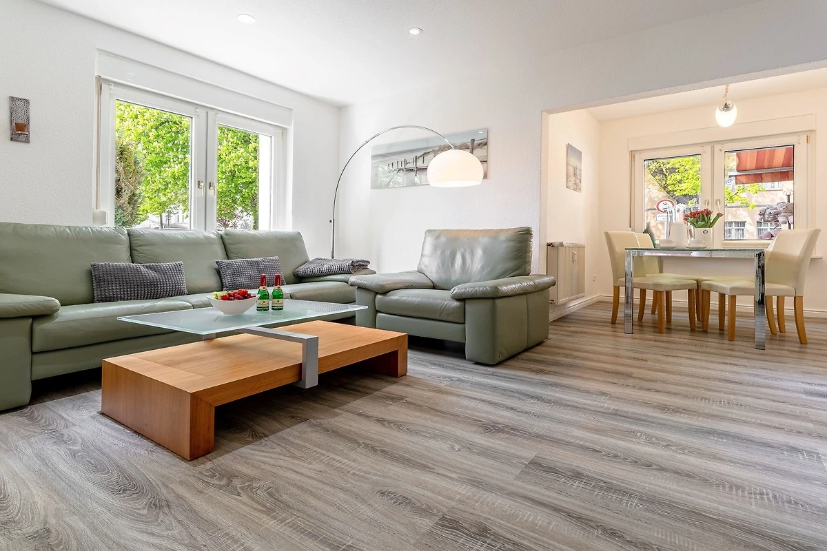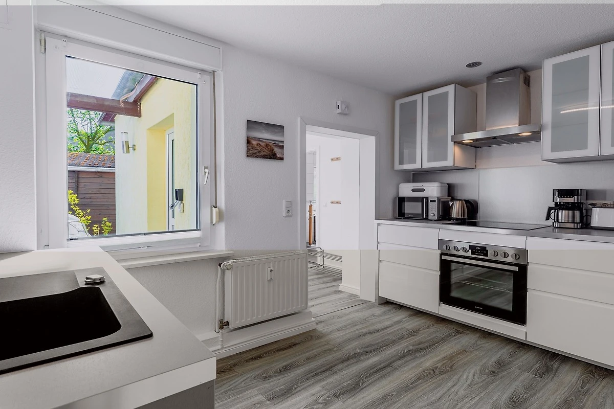 Sie wohnen in der Ferienwohnung Morgensonne im Erdgeschoss der liebevoll sanierten Villa "Helga" in zentraler Lage in Zinnowitz. Zum Strand sind es nur ca. 700 Meter. Das Appartement ist 72 qm gross und ist mit modernen Möbeln ausgestattet. Es bietet insgesamt sechs Schlafplätze. Im Schlafzimmer befinden sich ein grosses Doppelbett (2x90x200) und ein Etagenbett (2x 90x200). Im zweiten Schlafzimmer befindet sich ein Doppelbett (140x200). Im Wohnzimmer lädt ein schöner Kaminofen zum Ausklang eines romantischen Abends ein. Die Böden sind im Jahr 2020 mit neuem Vinyl und Fliesen ausgelegt worden. Im modernen Bad gibt es eine Badewanne zum Verwöhnen. Die Wohnung verfügt über einen eigenen Stellplatz und eine Fahrradabstellmöglichkeit. Auf der Terrasse können Sie den Abend mit dem Grill geniessen. Die Ausstattung der Ferienwohnung Morgensonne lässt keine Wünsche offen. Dazu zählen kostenfreies WLAN, Smart-TV mit Streamingfunktion, Geschirrspüler, Kühl-Gefrierkombination, Backofen mit Induktions-Kochfeld, Mikrowelle, Wasserkocher, Kaffeemaschine, Senseo-Kaffeepadmaschine, Toaster, Eierkocher, Föhn, Waschmaschine, Babybett, Babyhochstuhl und vieles mehr.