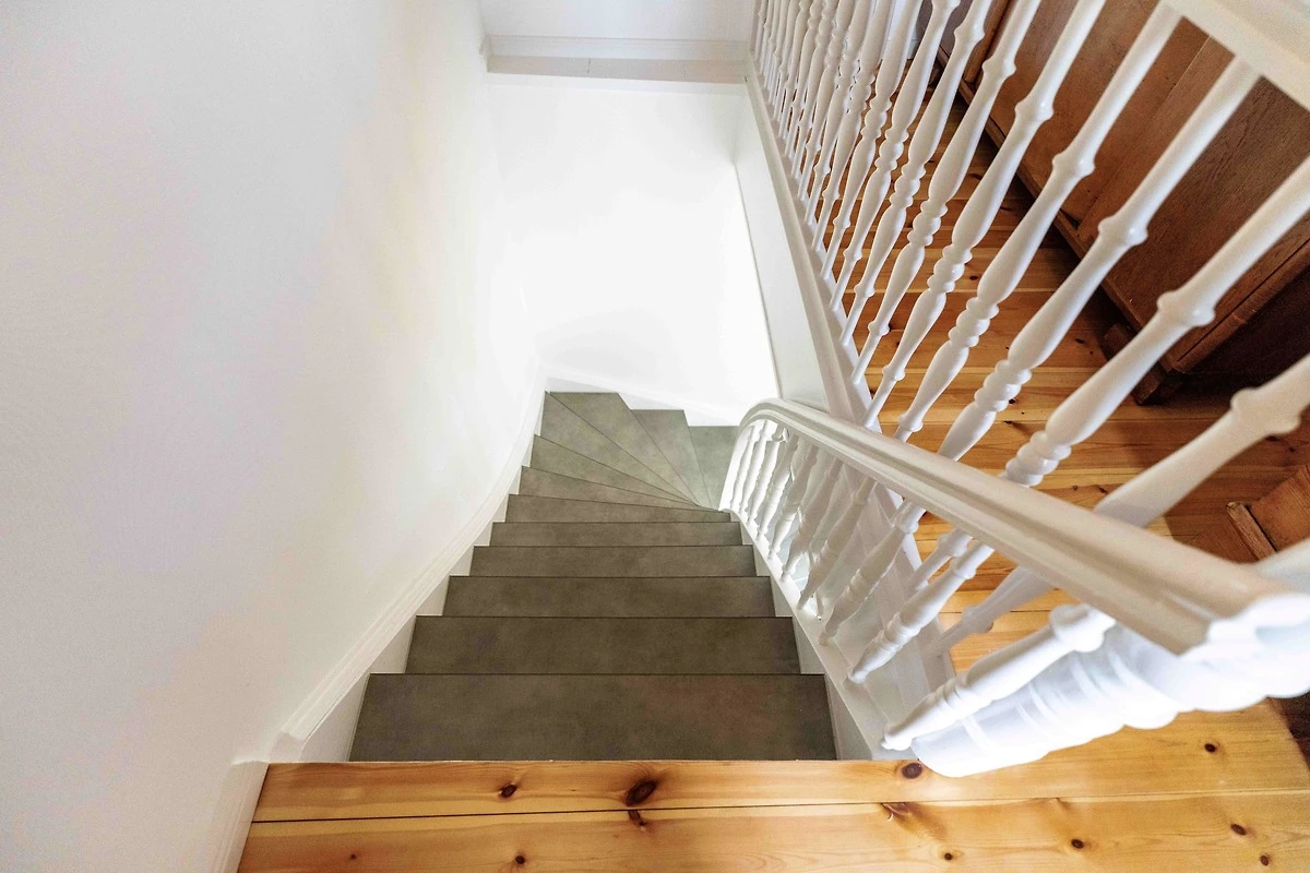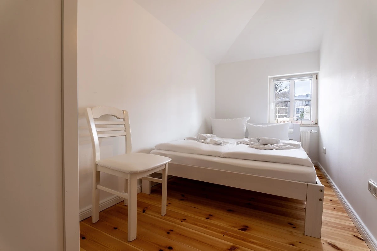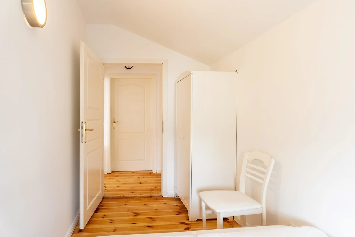 Sie gelangen durch eine kleine Treppe in der liebevoll sanierten Villa ins Obergeschoss, wo Sie Ihre 52qm grosse Ferienwohnung mit einem kleinen, gemütlichen Schlafzimmer mit einem 140 cm breiten Doppelbett und einem hellen Wohnzimmer finden werden.